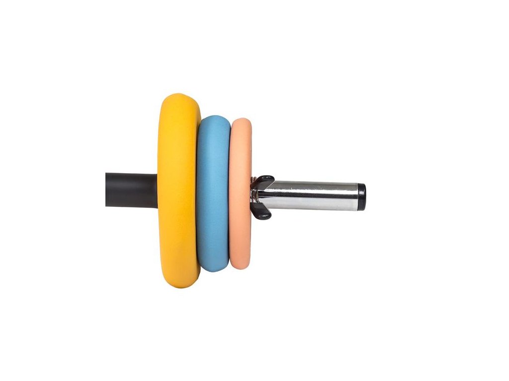 Činka je totiž vhodná pre cvičenie typu "BODY Pump či Pump FX". Oceľová os je potiahnutá penou, ktorá spríjemní úchop tohto modelu a zabráni poškodeniu dlaňou. Na stranách je činka vybavená bezpečnostnými uzávermi.