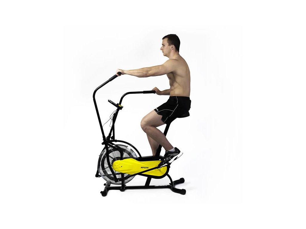 Vďaka predným úchopom posilňujete jazdou na rotopede tiež horné partie tela. Preto tréning na rotopede MP6590 ovplyvňuje rozvoj celého tela. Tento inovatívny rotoped sa výborne osvedčí počas rozcvičky. Stačí pár minút na to, aby sa teplota Vášho tela značne zvýšila. Bezpečne rozcvičíte a zahrejete Vaše kĺby a tiež svaly, pretože im nie je postavený mechanický odpor. Jediný odpor, ktorý musí prekonať, je odpor vzduchu. Vďaka zapojeniu celého tela veľmi rýchlo zvýšite telesnú teplotu a tiež značne zrýchlite fungovanie metabolizmu.