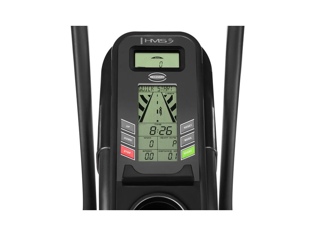 - funkcia: čas tréningu, vzdialenosť, rýchlosť, tepová frekvencia, kalórie, výkon, recovery, RPM