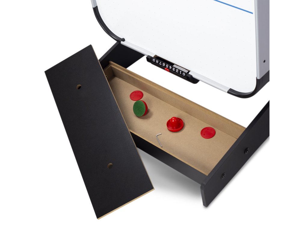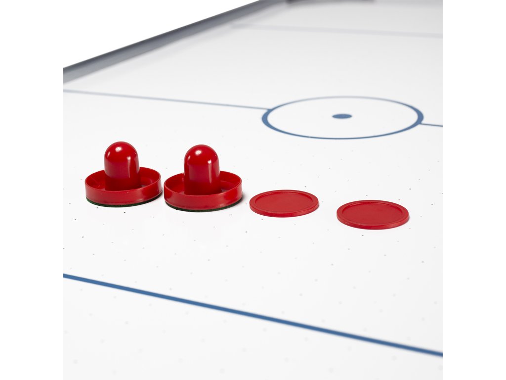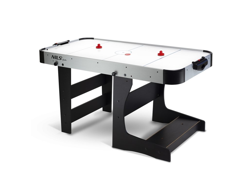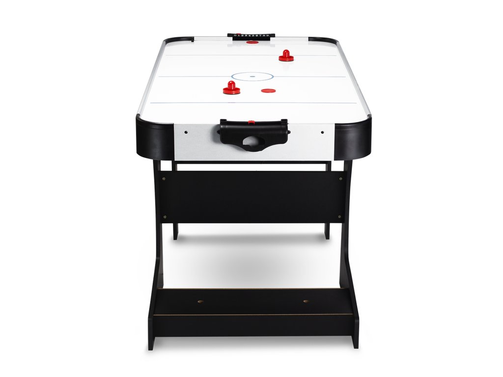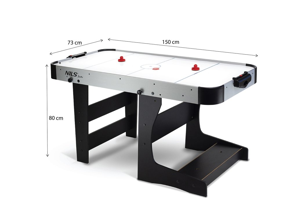 Tento model je vyrobený z kvalitného MDF, odolného voči akémukoľvek poškodeniu. Hladké vodítka a kontúrované rukoväte zaručujú vysoký komfort a sklopné nožičky umožňujú ľahšiu prepravu stolov z miesta na miesto. Hracia plocha je vybavená špeciálnymi vzduchovými otvormi, ktoré uľahčujú pohyb disku a poskytujú dynamiku hry.