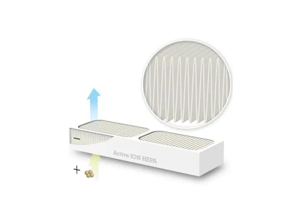 Aktívny ION HEPA filter skrýva tajomstvo vysokej kapacity čističky vzduchu Woods, nízkej spotreby energie a nízkej hladiny hluku. Filter je vyrobený zo špeciálneho syntetického materiálu s elektricky nabitými vláknami, ktoré veľmi efektívne zachytávajú častice zo vzduchu.