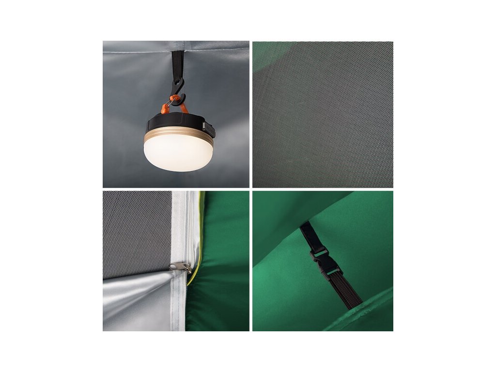 - materiál tropika a hornej časti spálne: polyester 190T, polyuretánová povrchová úprava, vodotesnosť 3000 mm H2O .