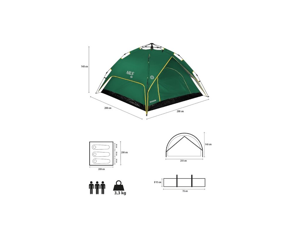 Stan 2v1 Nils Camp NC7819 možno rozložiť v priebehu niekoľkých okamihov. Stačí ho vybrať z prepravného obalu, rozložiť, narovnať 4 hlavné tyče rámu, rozložiť a zaistiť posunutím mechanizmu v stredovej kupoli, stan je pripravený. V prípade potreby možno stan zaistiť pomocou dodaných upevňovacích šnúr a kolíkov.
