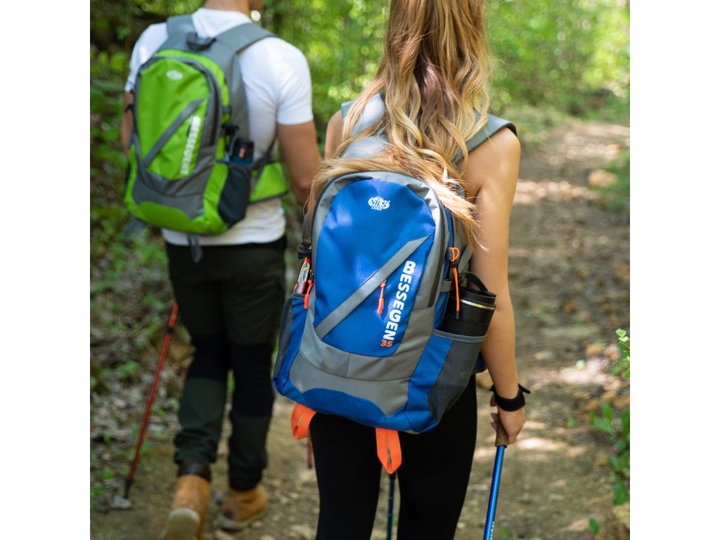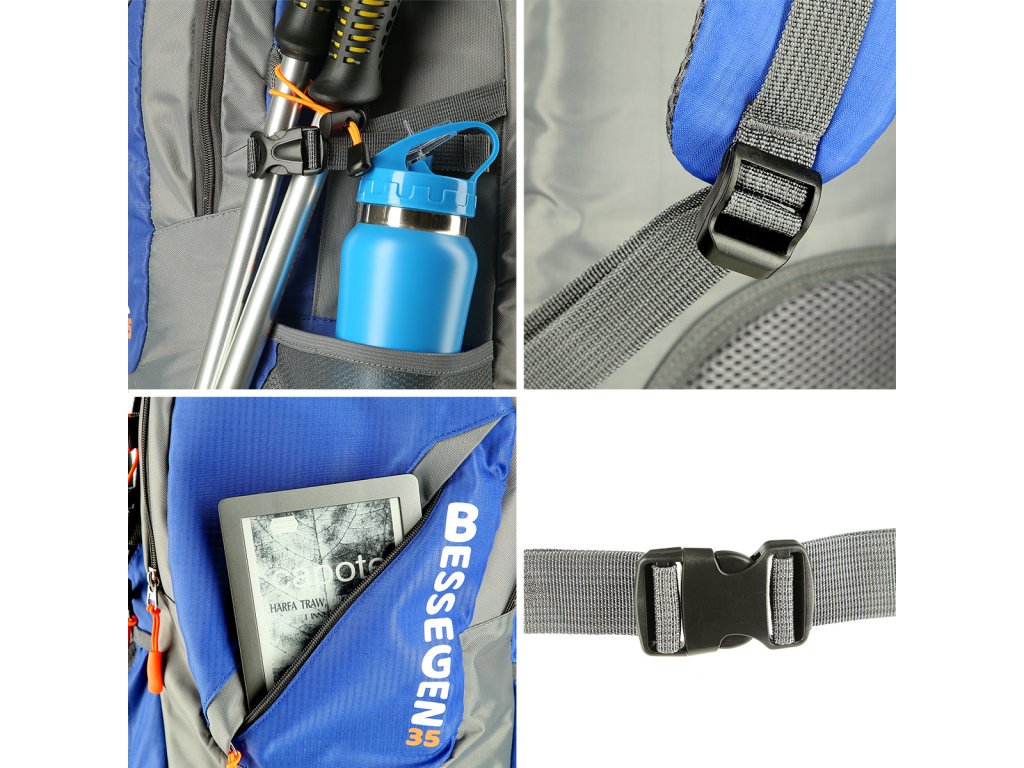 Model Bessegen má celkom 3 priehradky s celkovým objemom 35 litrov. Veľká hlavná komora sa otvára pomocou dvojcestného zipsu, priestor je dostatočne veľký na uloženie všetkých vecí potrebných napríklad na celodenný výlet s deťmi. Do strednej komory sa zmestia dokumenty a zložky až do veľkosti A4. Predná priehradka je určená na menšie predmety, ako je peňaženka alebo mobilný telefón. Po stranách batohu sú 2 priehradky zo sieťoviny, do ktorých sa zmestí napríklad fľaša na vodu, dlhšie predmety sa dajú dodatočne upevniť pomocou popruhov s prackou. Pútka na bokoch slúžia na pripevnenie turistických palíc. Posledné 2 vrecká na zips sa nachádzajú na bedrovým popruhu a môžete ich použiť napríklad na mince alebo kľúče od domu.