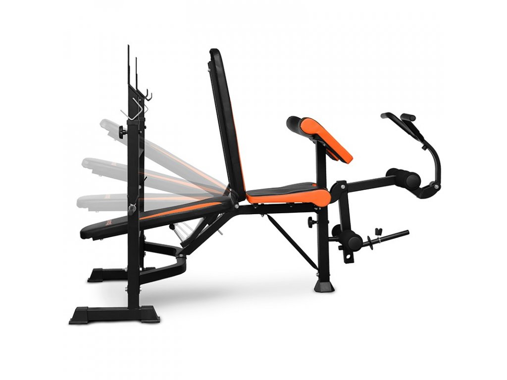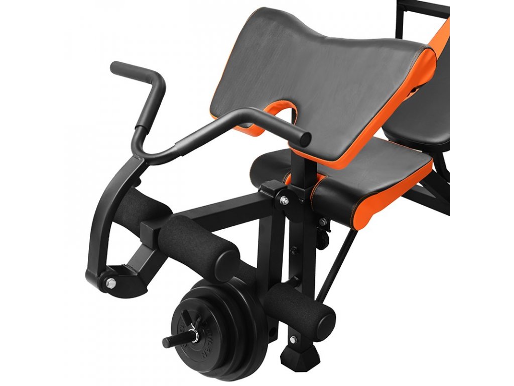 Na tejto lavičke máte možnosť precvičiť predkopávanie, zakopávanie, izolovaný biceps a bench press pod veľkou činkou. Bicepsová opierka je ergonomicky tvarovaná a pri cvičení nebudete potrebovať asistenta. Oceľová konštrukcia má profil s rozmerom až 50 x 50 mm, takže lavička je stabilná a pevná. Pri konštrukcii lavičky sme mysleli aj na Vaše pohodlie, preto sú sedadlo aj chrbtová opierka dostatočne veľké a s kvalitným polstrovaním. Veľmi praktickou súčasťou lavičky sú aj trny na odkladanie závažia..
