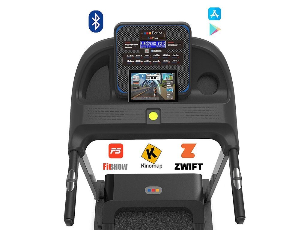 Vďaka vstavanému Bluetooth môžete bežecký pás jednoducho pripojiť k vašim obľúbeným zariadeniam ako sú TV, PC, smartfón a tablet. Stiahnite si kompatibilné aplikácie ako Kinomap, Zwift a Fitshow a vychutnajte si štruktúrované tréningy, motivačnú hudbu, prispôsobené koučovanie a výzvy.