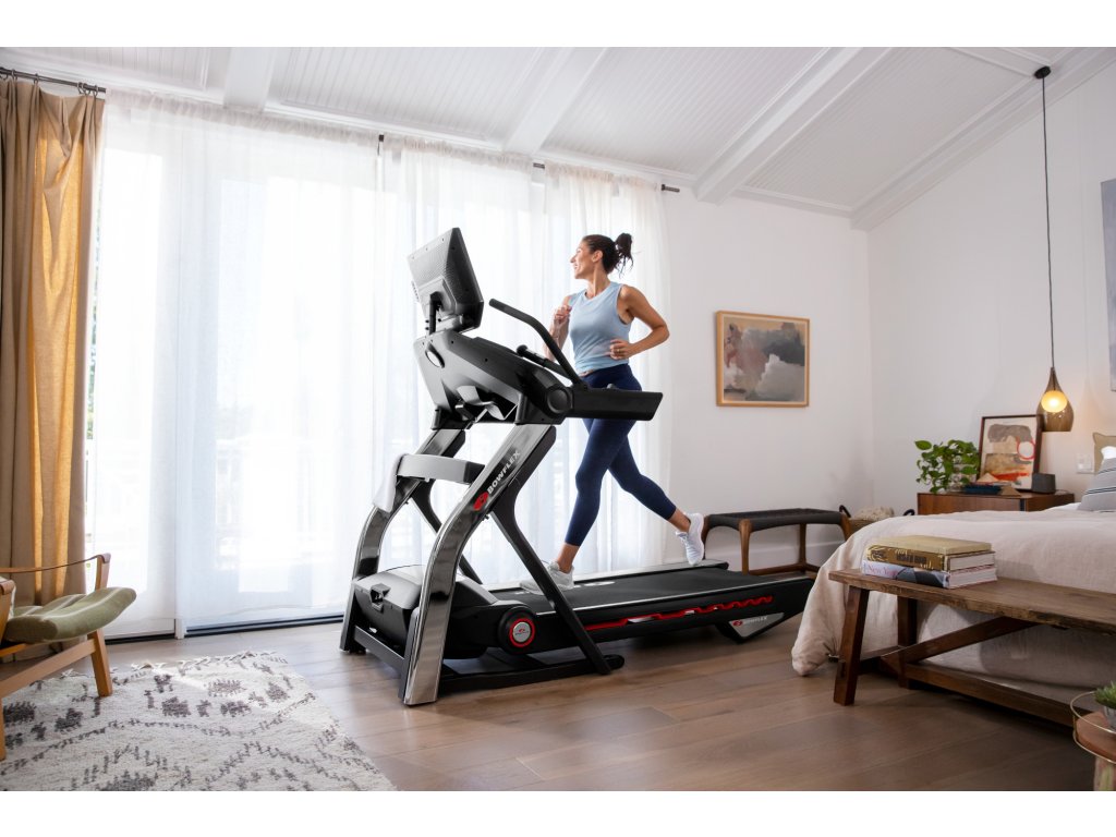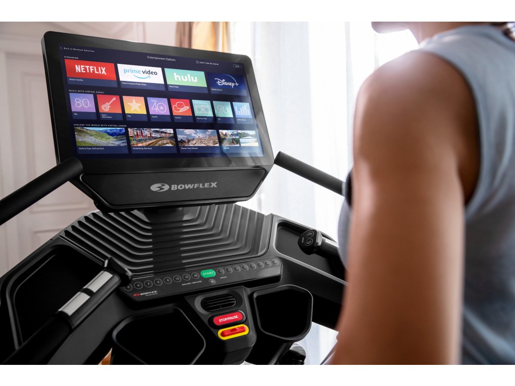 Kvalitné odpruženie Comfort Tech™ pohlcuje nárazy a poskytuje mäkší a stabilný došľap pri každom kroku. Bežecká plocha s rozmermi 152 x 56 cm poskytuje dostatok priestoru pre plnohodnotný beh i intervalové tréningy so striedaním rytmu. Vďaka elektronicky nastaviteľnému sklonu dosky v rozmedzí -5% až 20%, môžete bežať rýchlosťou až 20km/h ako do kopca, tak i z kopca. Interaktívny 22“ dotykový displej s nastaviteľným sklonom a integrovanou aplikáciou Bowflex JRNY™ prehľadne zobrazuje všetky dosiahnuté tréningové hodnoty ako sú čas, rýchlosť, tréningovú vzdialenosť, puls, sklon pásu a počet spálených kalorií.