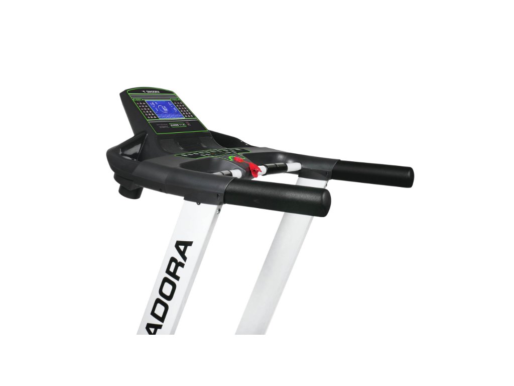 Bežecký pás Diadora Excess 11.2 sa vyznačuje kvalitnou konštrukciou a moderným prevedením. Počas tréningu oceníte možnosť nastavenia rýchlosti a sklonu priamo z konzoly. Bežecký pás s maximálnou rýchlosťou 20 km/h ponúka veľký podsvietený LCD displej, kde môžete sledovať všetky namerané hodnoty počas cvičenia. Na výber máte 42 tréningových programov, 3 programy riadené pulzom a program kontroly telesného tuku. Vďaka 7 elastomérom je aj dlhý beh šetrný pre vaše kĺby. Pocit pohodlia vám zaručí bezpečnostný kľúč, ktorý pri kolízii bežecký pás okamžite zastaví. Výhodou je možnosť zloženia pre úsporu miesta a transportné kolieska, ktoré vám zabezepčia jednoduchú manipuláciu.