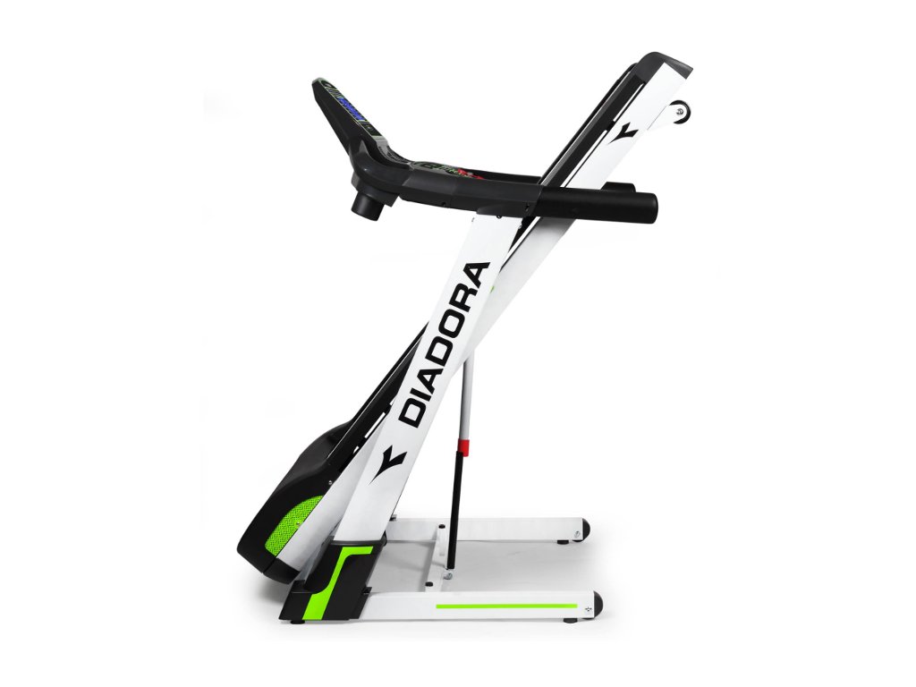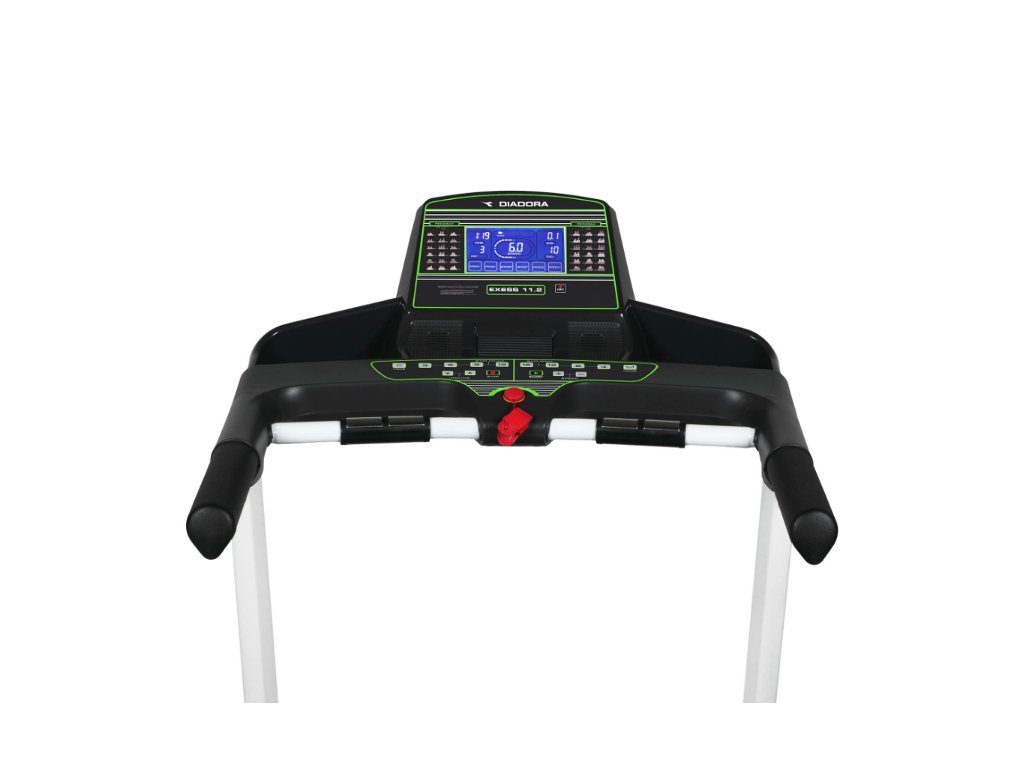 Bežecký pás Diadora Excess 11.2 sa vyznačuje kvalitnou konštrukciou a moderným prevedením. Počas tréningu oceníte možnosť nastavenia rýchlosti a sklonu priamo z konzoly. Bežecký pás s maximálnou rýchlosťou 20 km/h ponúka veľký podsvietený LCD displej, kde môžete sledovať všetky namerané hodnoty počas cvičenia. Na výber máte 42 tréningových programov, 3 programy riadené pulzom a program kontroly telesného tuku. Vďaka 7 elastomérom je aj dlhý beh šetrný pre vaše kĺby. Pocit pohodlia vám zaručí bezpečnostný kľúč, ktorý pri kolízii bežecký pás okamžite zastaví. Výhodou je možnosť zloženia pre úsporu miesta a transportné kolieska, ktoré vám zabezepčia jednoduchú manipuláciu.