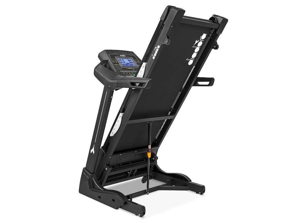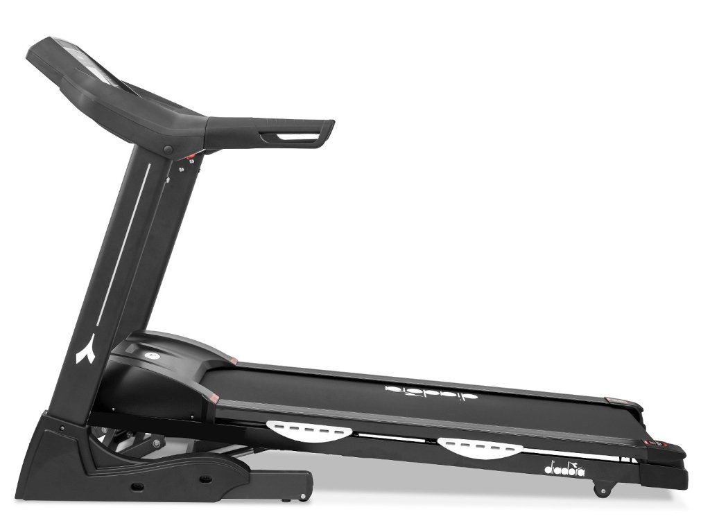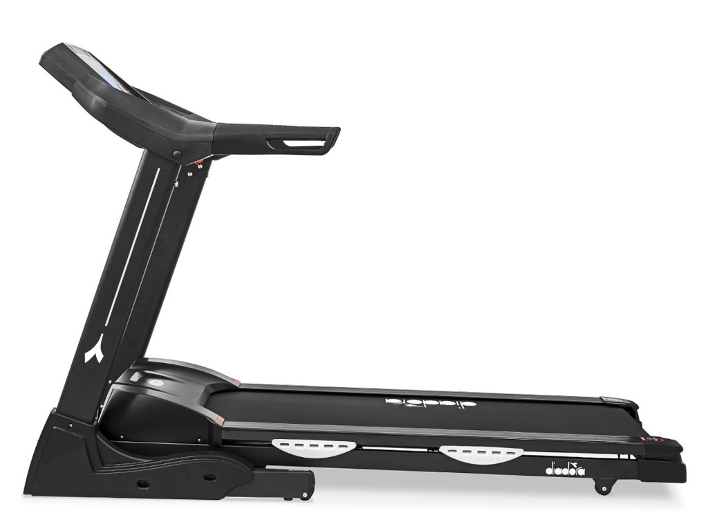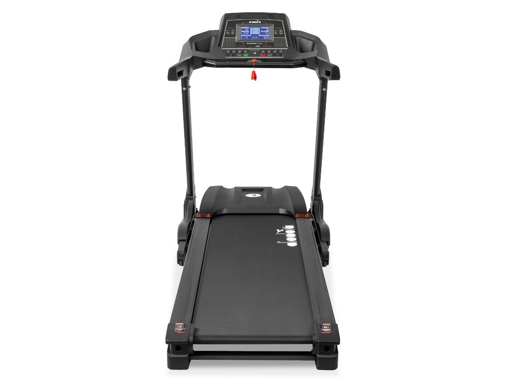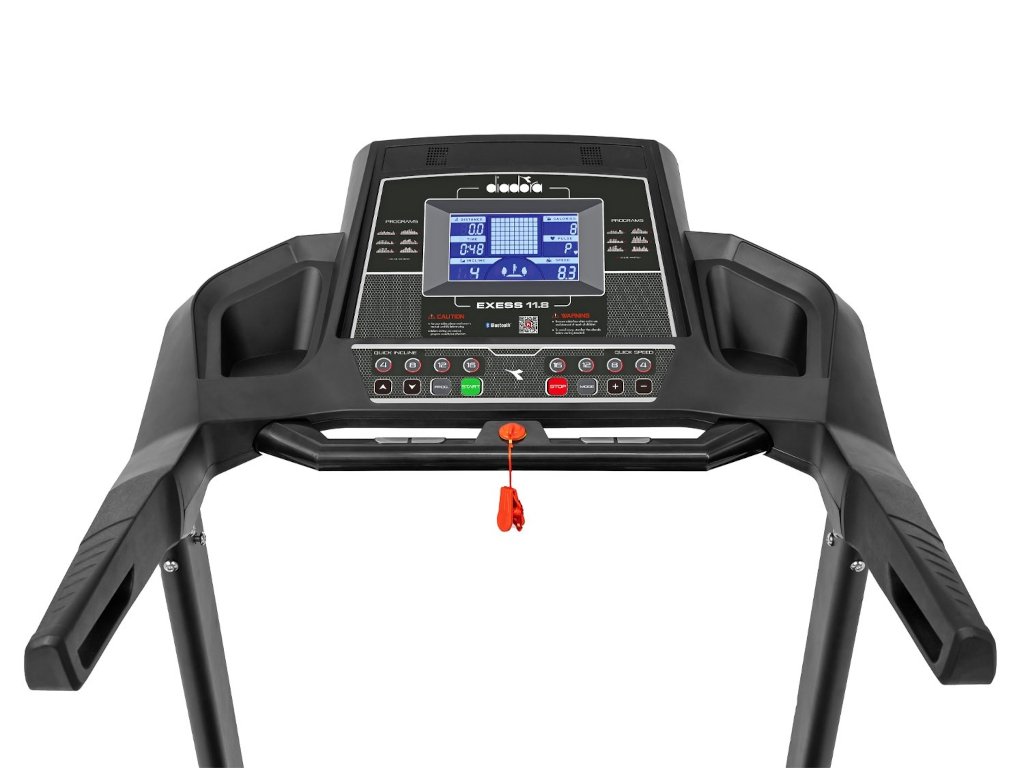 Bežecký pás Diadora EXESS 11.8 je výnimočným spojencom pre domácich fitness nadšencov vďaka svojej veľkej bežeckej ploche, 4 HP motoru, ktorý vám umožní dosiahnuť rýchlosť 22 km/h a elektricky nastaviteľnému sklonu na 20 úrovniach. Ponúka realistickú simuláciu stúpania. Kompatibilita s fitness aplikáciami ako FitShow, Kinomap a Zwift premení bežecký pás na interaktívne tréningové centrum, ktoré používateľom umožňuje ponoriť sa do virtuálnych scenárov a sledovať pokrok, zatiaľ čo integrované reproduktory vám umožnia trénovať v rytme vašej obľúbenej hudby.