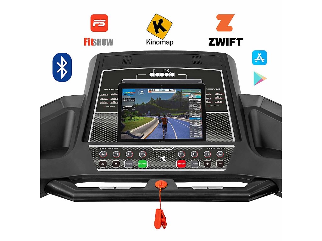 Integrovaná technológia je ďalším kľúčovým aspektom tohto bežeckého pásu. Vďaka kompatibilite s poprednými fitness aplikáciami na trhu, ako sú FitShow, Kinomap a Zwift, sa používatelia môžu ponoriť do virtuálnych scenárov, vďaka ktorým je tréning dynamický a vzrušujúci. Nielen to, Diadora EXESS 11.8 je vybavená integrovanými reproduktormi, ktoré umožňujú užívateľom pripojiť mp3 zariadenia a vychutnať si obľúbenú hudbu, čím umocnia zážitok z tréningu a udržia energetickú hladinu na vysokej úrovni.