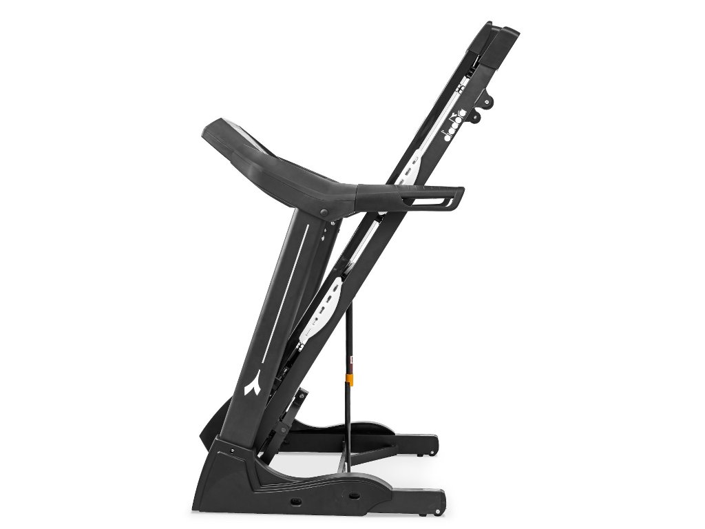 Vopred zmontovaný, priestor šetriaci dizajn skladania s hydraulickým posilňovačom skladania vám umožňuje ľahko uložiť bežecký pás, keď sa nepoužíva. Okrem toho bežecká plocha odpružená 8 dvojpodlažnými elastomérmi zaisťuje znížený vplyv na kĺby, čo je nezanedbateľný detail pre tých, ktorí trénujú pravidelne a na dlhé vzdialenosti.