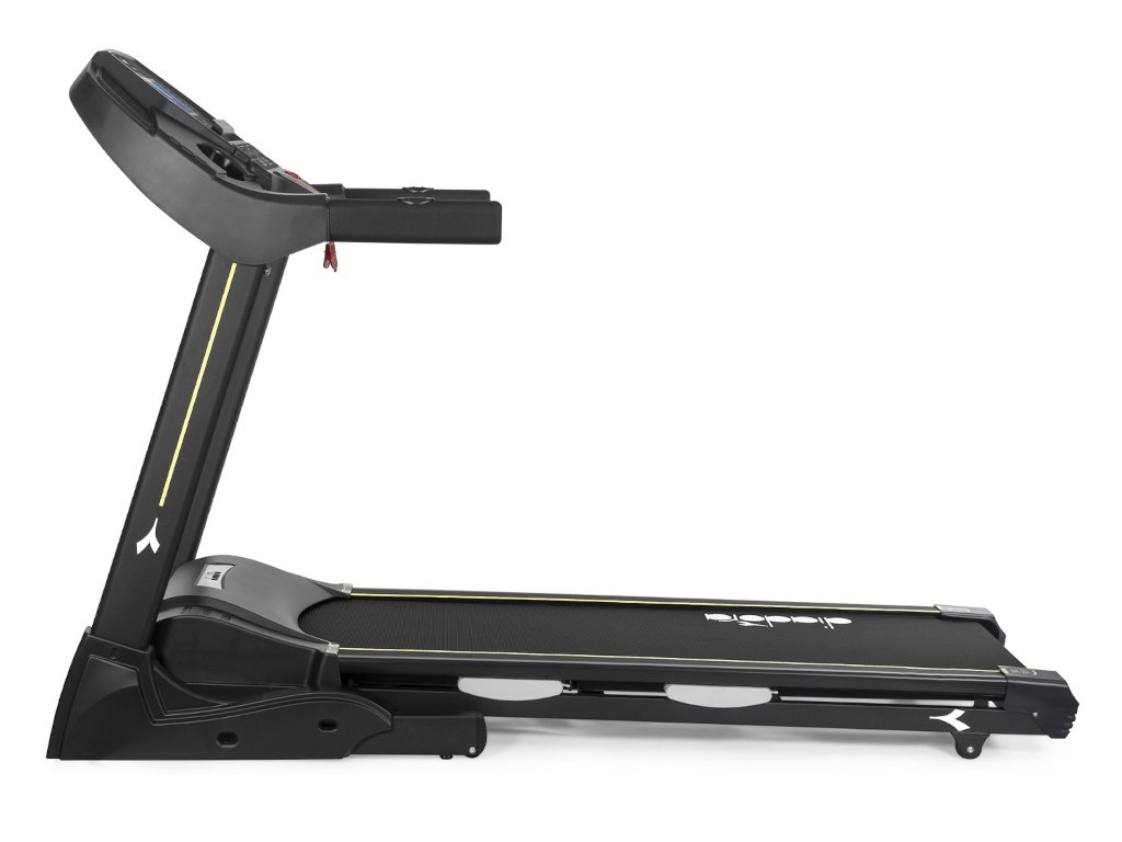Diadora Exess 14.5 má skutočne výraznú bežeckú plochu s rozmermi 58 x 150 cm, ktorá je vhodná aj pre obzvlášť vysokú osobu a na dlhší beh. Tento model má 3,5 HP výkonný motor, ktorý vám umožní dosiahnuť rýchlosť až 22 km/h!