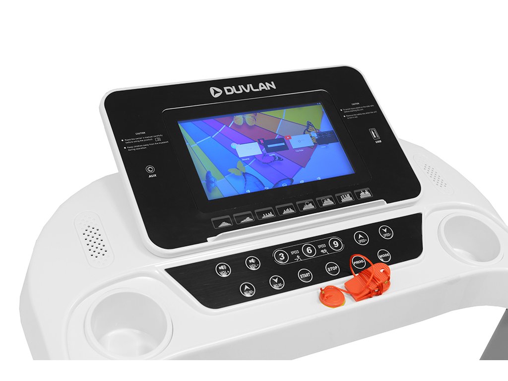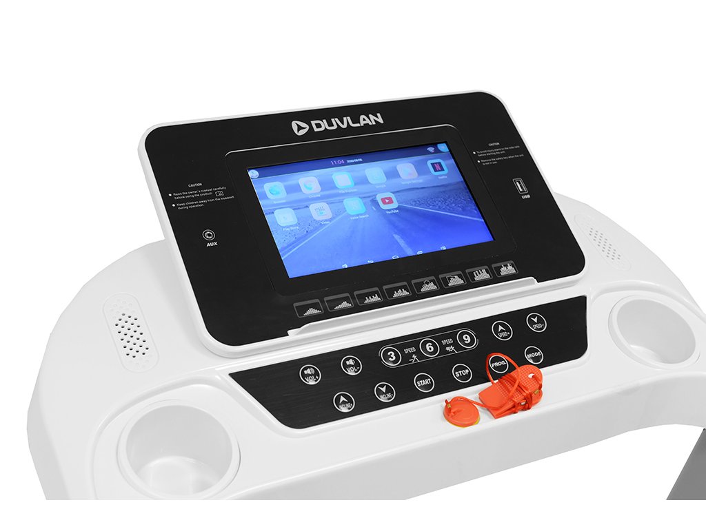 Pás je vybavený snímačmi tepovej frekvencie umiestnenými v držadlách a bezpečnostným kľúčom zaisťujúcim okamžité vypnutie pásu pri strate stability. Bežecká plocha s rozmerom 120x42 cm je dostatočne veľká na pohodlný beh. Samozrejmosťou je elektronicky nastaviteľný sklon bežeckej plochy.