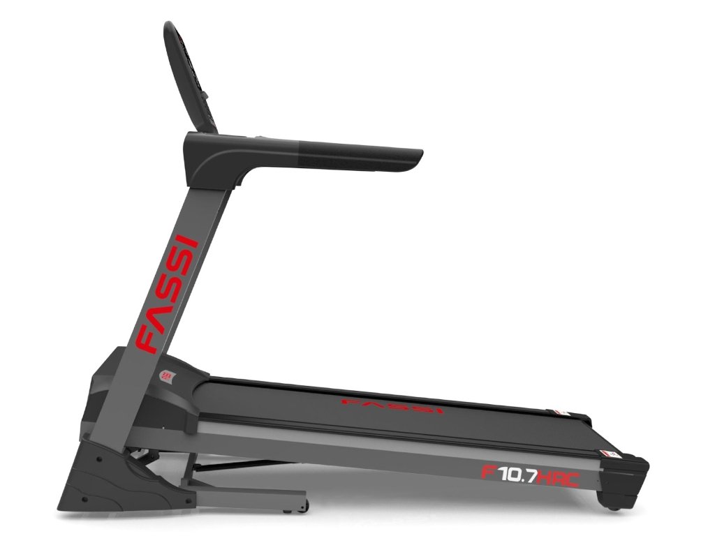 Na konci tréningu je možné bežecký pás Fassi F10.7 zložiť pre pohodlné uskladnenie, čím ušetríte miesto.