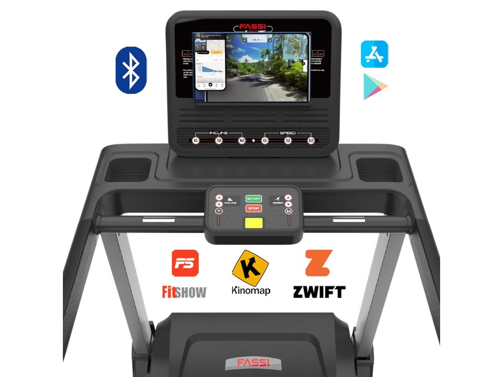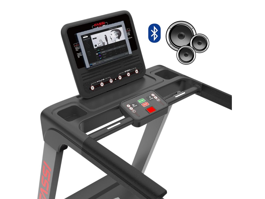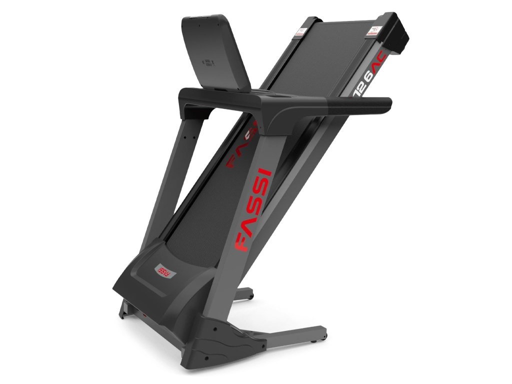 Pre pohodlie a funkčnosť je bežecký pás Fassi 12.6 AC vybavený držiakom na tablet , vstavanými reproduktormi pre optimálnu zábavu a tlačidlami rýchleho prístupu pre rýchlosť a sklon na počítači aj na madlách. Inteligentný dizajn zahŕňa skladaciu konštrukciu šetriacu priestor a hydraulické skladanie s podporou motora pre jednoduchú manipuláciu a skladovanie. Systém odpruženia bežeckej plochy s 8 dvojitými elastomérmi zaručuje cvičenie s nízkym dopadom, chráni kĺby a zvyšuje pohodlie pri používaní.