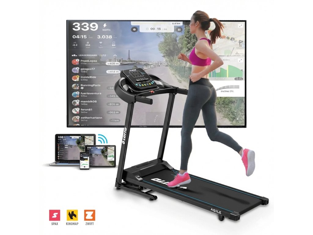 Náramok je možné pripojiť cez Bluetooth k smartfónu alebo tabletu a ovládať ho pomocou aplikácií FitShow alebo Kinomap a prostredníctvom aplikácie Zwift sa môžete zúčastniť tréningu vo virtuálnom svete s ostatnými ľuďmi. Obsahuje 12 prednastavených programov na spestrenie cvičení a je vybavený integrovanými reproduktormi a držiakom na tablet/smartfón, čo poskytuje príjemnejší tréning.