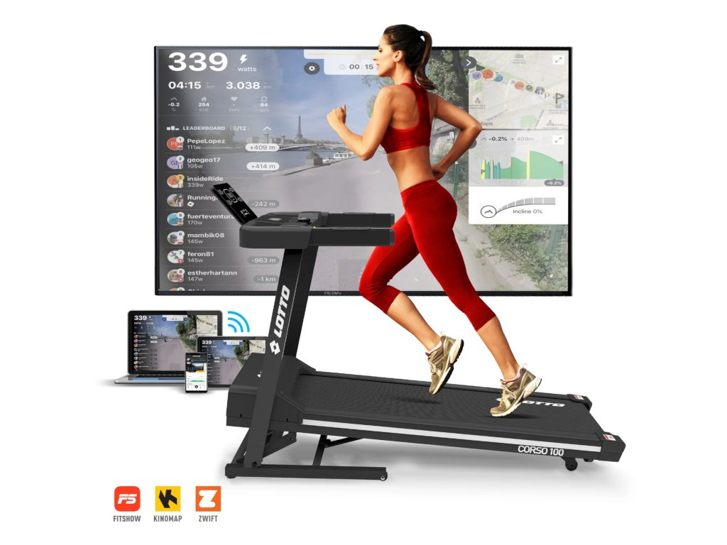 Funkcia Bluetooth vám umožňuje pripojiť sa k smartfónu alebo tabletu, čo otvára možnosť ovládať bežecký pás prostredníctvom aplikácií FitShow/Kinomap. Môžete si tiež vyskúšať interaktívne virtuálne tréningy prostredníctvom aplikácie Zwift spolu s ďalšími nadšencami. Dotyková klávesnica a klávesové skratky integrované do rukovätí spolu so snímačmi srdcovej frekvencie poskytujú intuitívny a kompletný tréningový zážitok.