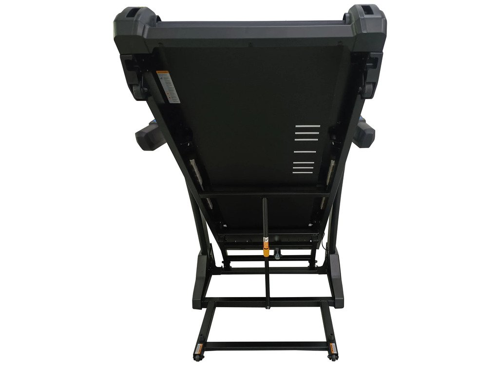 Praktický dizajn zahŕňa integrované Bluetooth reproduktory, držiak na tablet/smartfón a držiak na fľašu/pohár. S čistou hmotnosťou 76 kg a možnosťou skladania na valci sa bežecký pás ľahko skladuje a prepravuje vďaka integrovaným kolieskam.