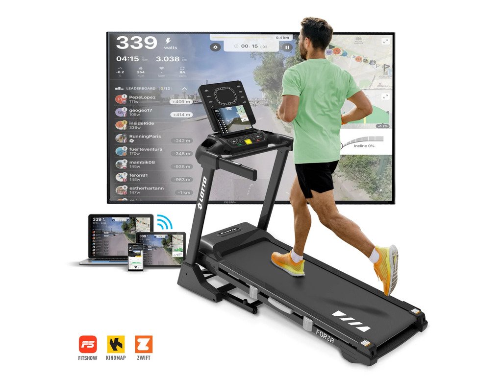 Vďaka výkonnému motoru s výkonom 4,25 HP dosahuje Lotto Forza rýchlosť od 1 do 18 km/h, čo vám poskytuje rôzne možnosti pre rôzne úrovne tréningu. 15-stupňový nastaviteľný motorizovaný sklon dodáva vašim bežeckým výzvam ďalší rozmer.