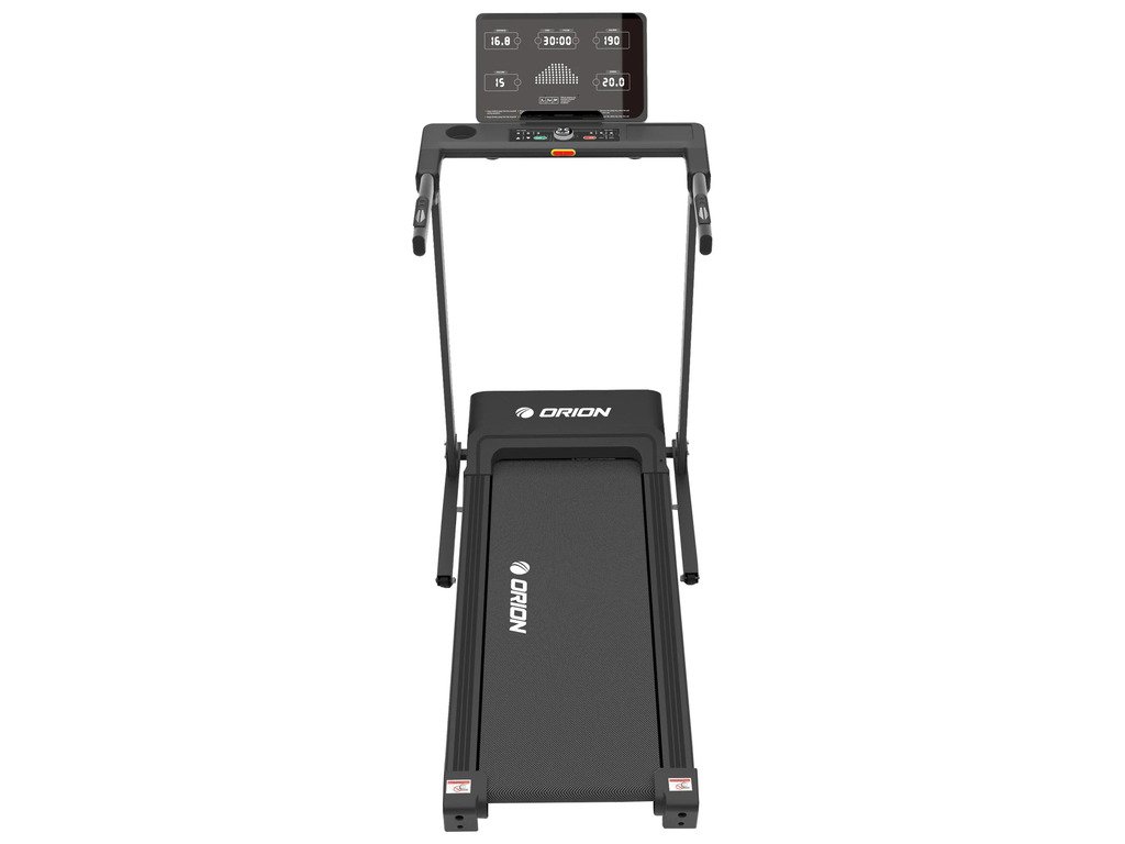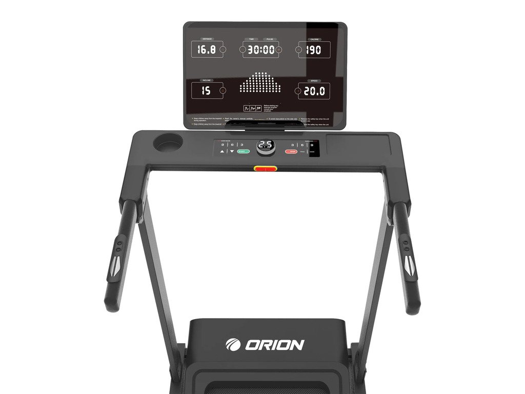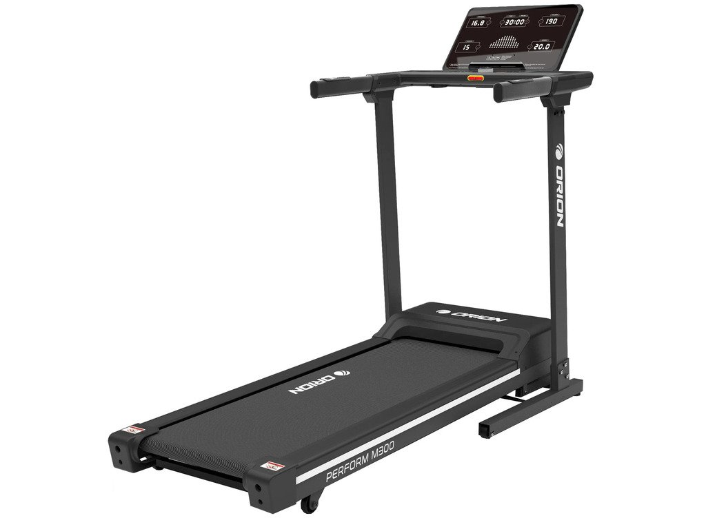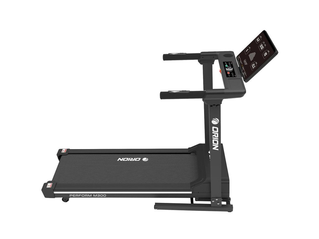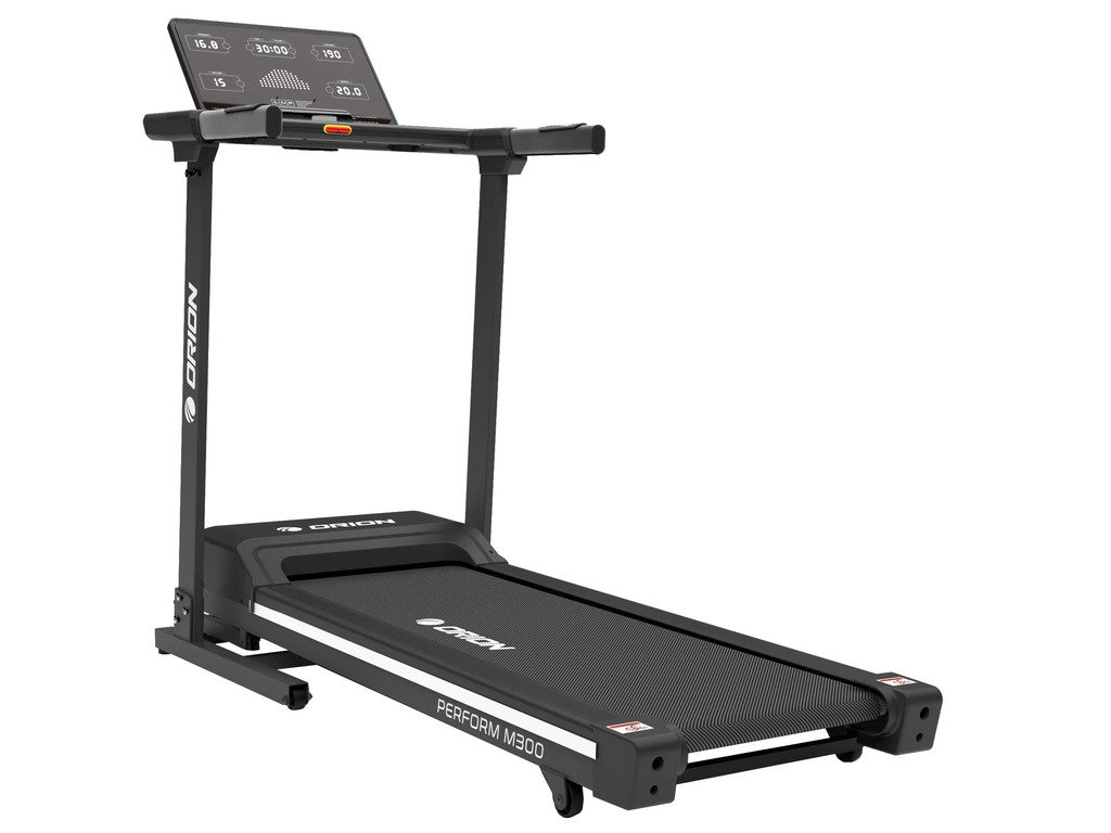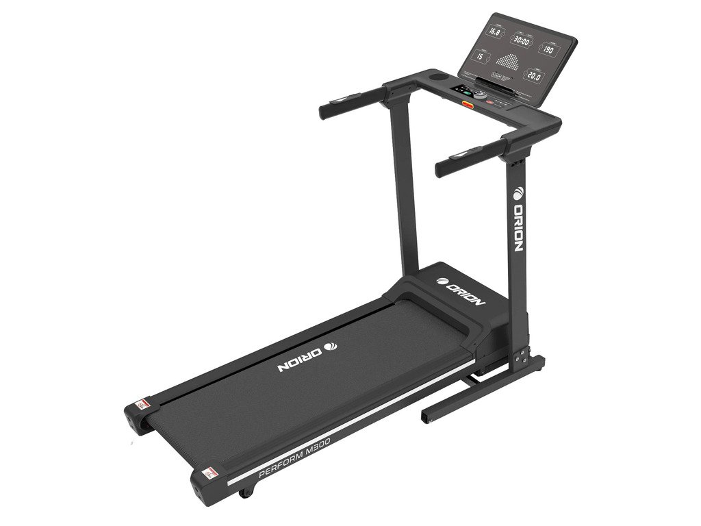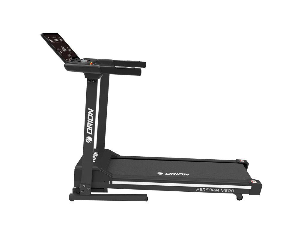 Biely LED počítač zobrazuje základné parametre: rýchlosť, čas, vzdialenosť, kalórie, pulz a sklon. Orion Perform M300 má 24 prednastavených programov, 3 používateľské programy a program telesného tuku. Dotykové tlačidlá a skratky pre rýchlosť a sklon robia používanie intuitívnym a pohodlným.