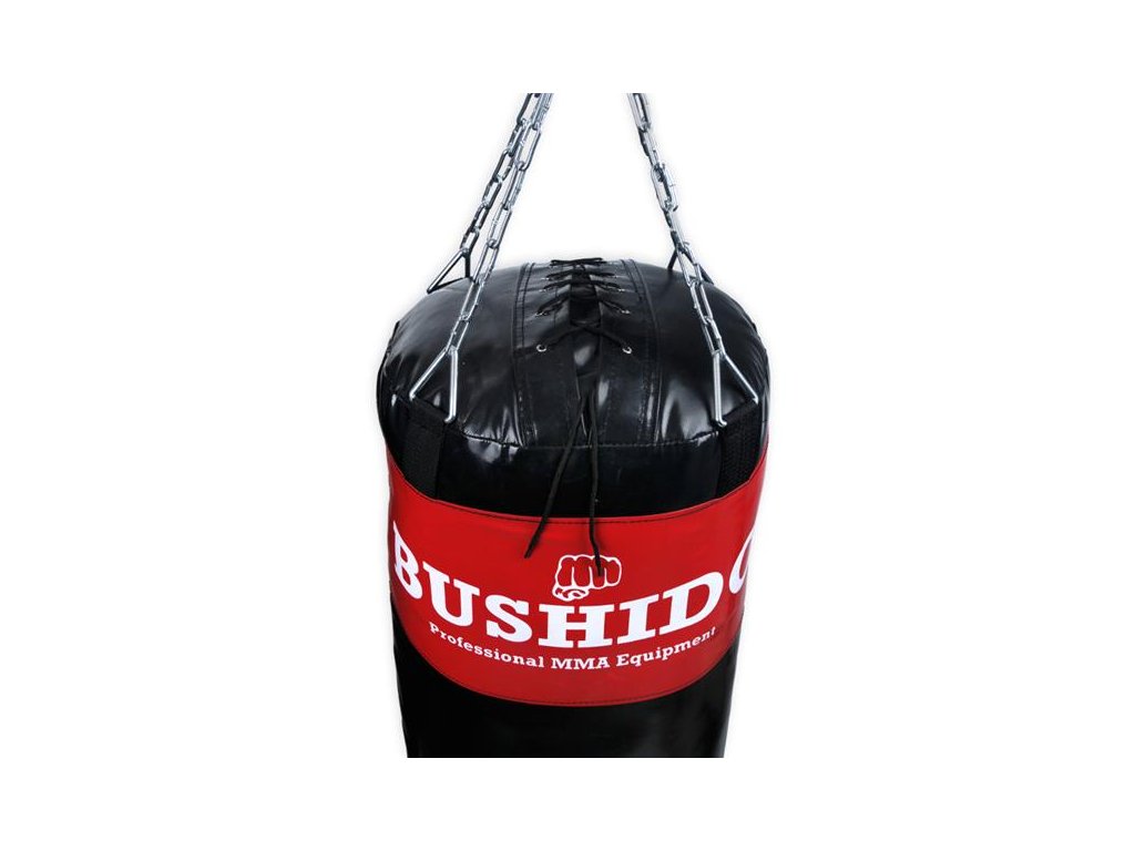 Profesionálne boxovacie vrece BUSHIDO 130 x 30 kg. Dĺžka reťaze pri zavesení 45 cm (vďaka karabíne možno nastaviť aj kratšiu dĺžku).