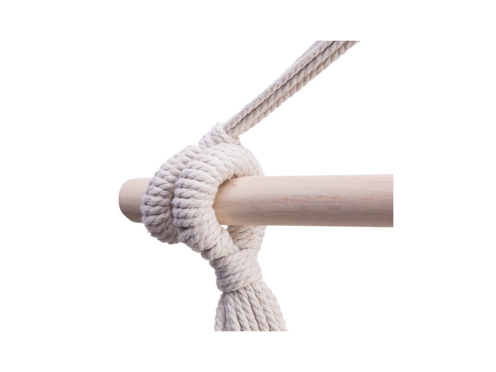 Dizajn brazílskej stoličky vychádza z hojdacej siete. Textilná časť je vyrobená z plátna T/C (kombinácia polyesteru a bavlny), ktoré je pomocou jednotlivých lán vytvarované do tvaru stoličky. Laná prechádzajú cez drevenú priečku a zbiehajú sa do visiaceho oka. Stačí kreslo rozbaliť, zavesiť ho kdekoľvek vo vhodnej výške a môžete relaxovať napríklad pri čítaní obľúbenej knihy. Použité materiály zabezpečujú nielen priedušnosť a pohodlie stoličky, ale aj jej dlhú životnosť a odolnosť.