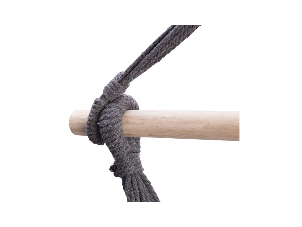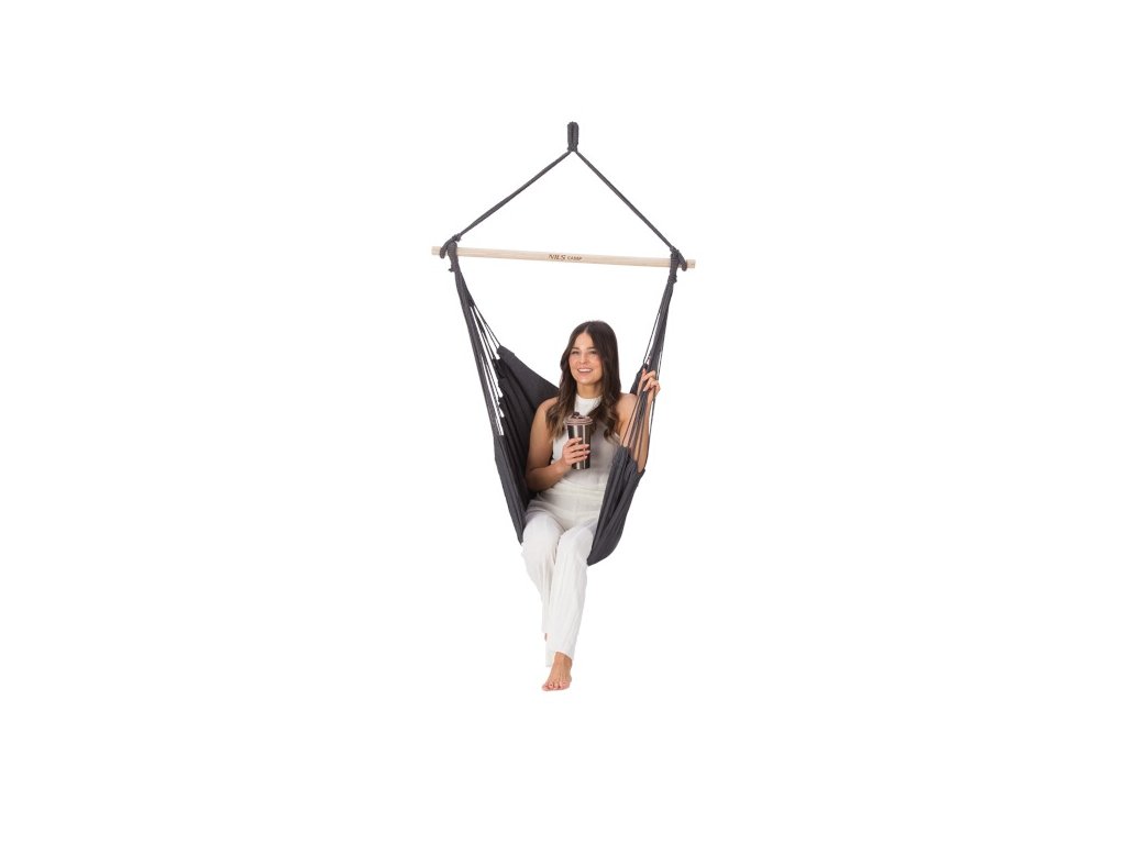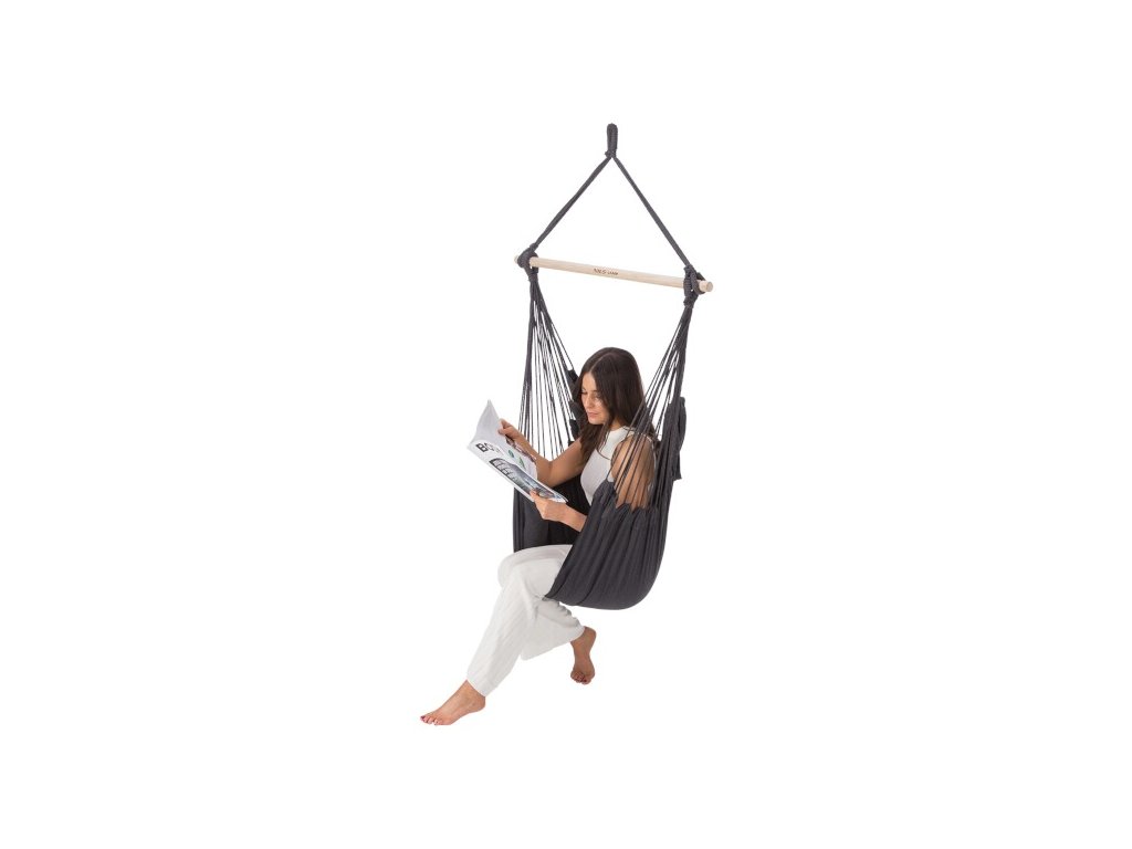 Dizajn brazílskej stoličky vychádza z hojdacej siete. Textilná časť je vyrobená z plátna T/C (kombinácia polyesteru a bavlny), ktoré je pomocou jednotlivých lán vytvarované do tvaru stoličky. Laná prechádzajú cez drevenú priečku a zbiehajú sa do visiaceho oka. Stačí kreslo rozbaliť, zavesiť ho kdekoľvek vo vhodnej výške a môžete relaxovať napríklad pri čítaní obľúbenej knihy. Použité materiály zabezpečujú nielen priedušnosť a pohodlie stoličky, ale aj jej dlhú životnosť a odolnosť.