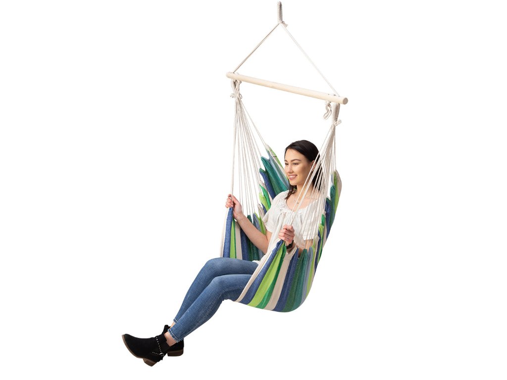 Dizajn brazílskeho kresla vychádza z hojdacej siete. Textilná časť je vyrobená z plátna T/C (kombinácia polyesteru a bavlny), ktoré je pomocou jednotlivých lán vytvarované do tvaru stoličky. Laná prechádzajú cez drevenú priečku a zbiehajú sa do visiaceho oka. Stačí kreslo rozbaliť, zavesiť ho kdekoľvek vo vhodnej výške a môžete relaxovať napríklad pri čítaní obľúbenej knihy. Použité materiály zabezpečujú nielen priedušnosť a pohodlie stoličky, ale aj jej dlhú životnosť a odolnosť.