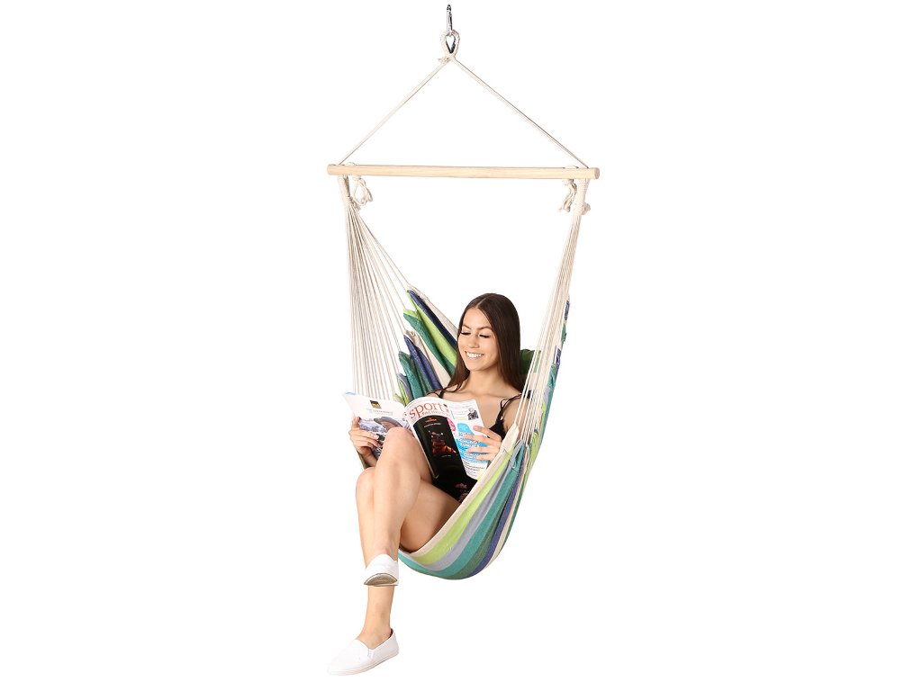 Dizajn brazílskeho kresla vychádza z hojdacej siete. Textilná časť je vyrobená z plátna T/C (kombinácia polyesteru a bavlny), ktoré je pomocou jednotlivých lán vytvarované do tvaru stoličky. Laná prechádzajú cez drevenú priečku a zbiehajú sa do visiaceho oka. Stačí kreslo rozbaliť, zavesiť ho kdekoľvek vo vhodnej výške a môžete relaxovať napríklad pri čítaní obľúbenej knihy. Model NC3107 je vybavený aj 2 pohodlnými vankúšmi. Použité materiály zabezpečujú nielen priedušnosť a pohodlie stoličky, ale aj jej odolnosť a dlhú životnosť.