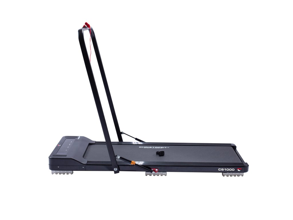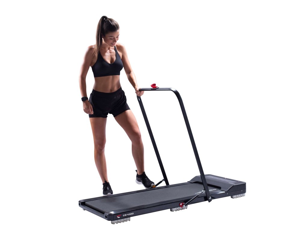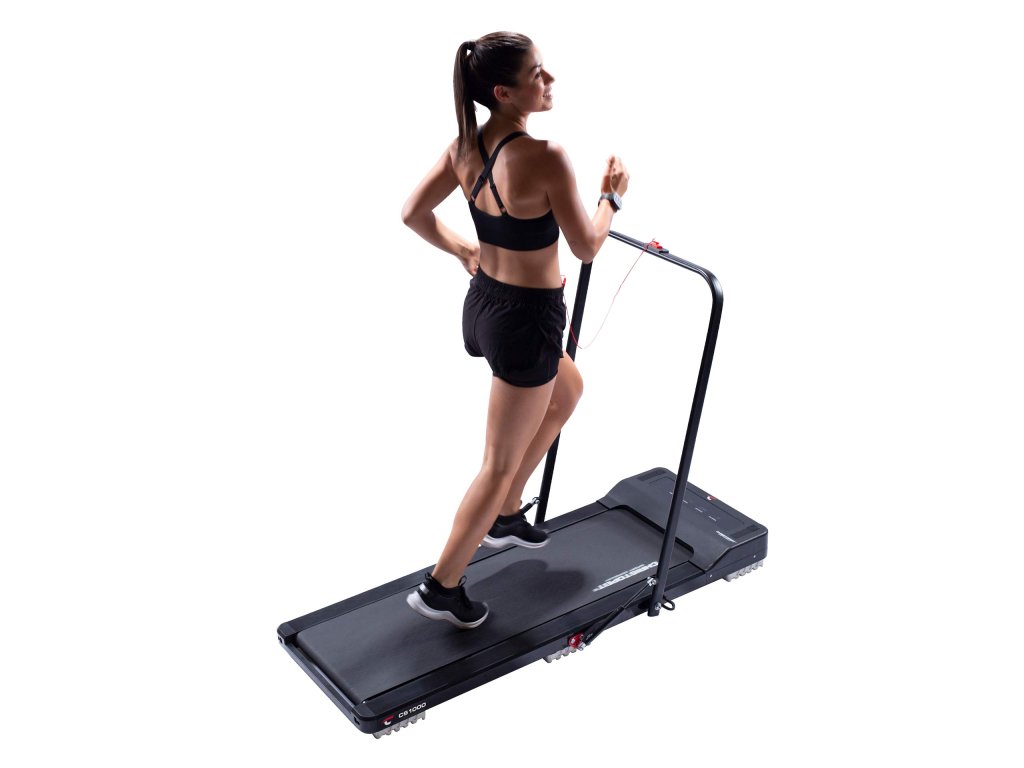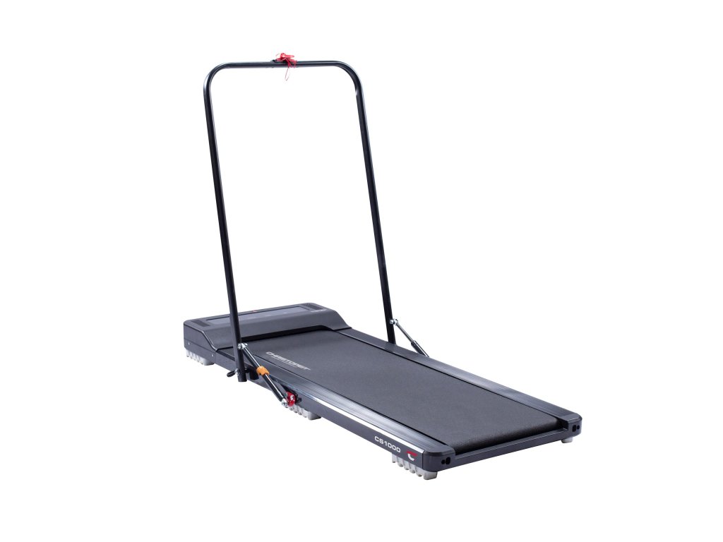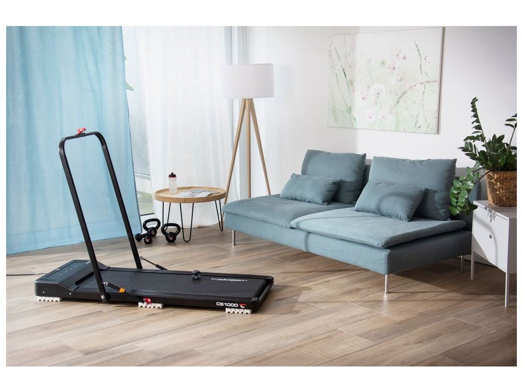 Bežecký pás je možné postaviť alebo zložiť bez väčšej námahy a možno ho po použití ľahko zložiť a ušetriť miesto. S výškou 13 cm sa dá zložiť ultra plocho a dá sa teda uskladniť takmer kdekoľvek. CS 1000 je preto ideálny aj pre domácnosti s malým priestorom.