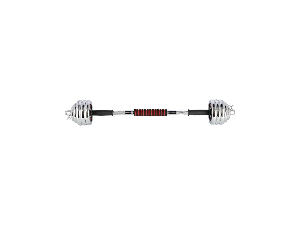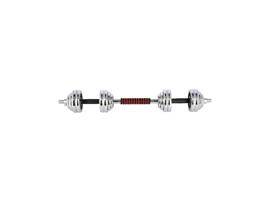 Špeciálny spojovací diel je po stranách opatrený závitmi, do ktorých sa jednoducho zaskrutkujú obe činky. Sada HMS STC30 je prvým modelom z našej ponuky, ktorá umožňuje toto riešenie, ktoré šetria náklady a miesto vo Vašej domácej posilňovni. Sada obsahuje 2 krátke, nakladacie osi opatrené ergonomickým úchopom, spojovací diel, 4 zámky a 16 kotúčov.