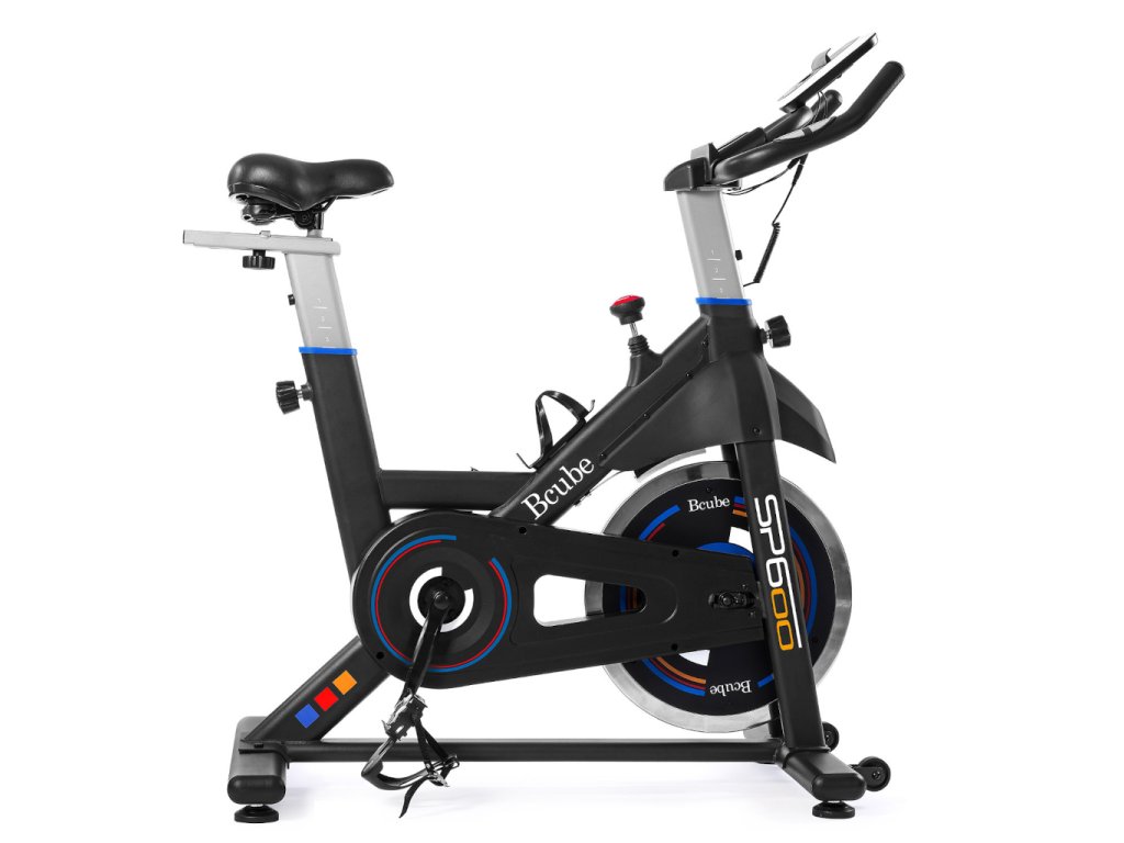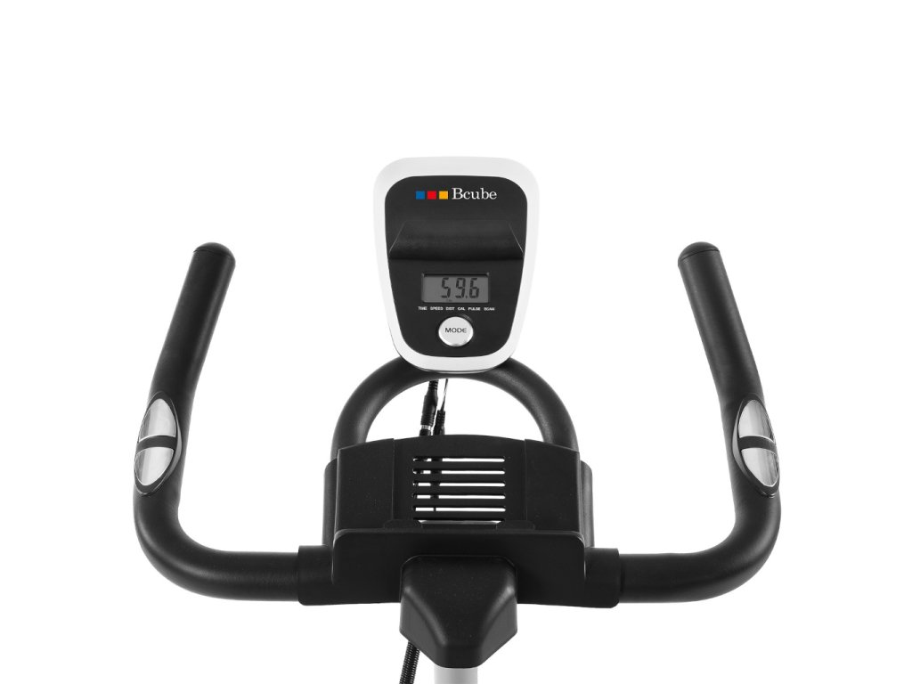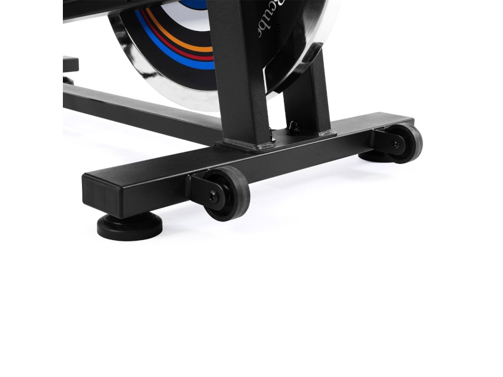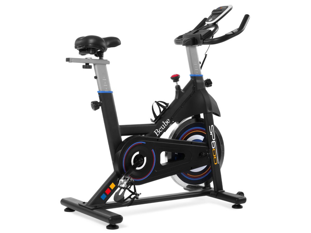 Bcube SP600 je kvalitný spinningový bicykel s 22 kg zotrvačníkom a remeňovým pohonom, ktorý zabezpečuje plynulý, tichý a realistický tréning podobný jazde na cestnom bicykli. Manuálne nastaviteľný brzdový systém umožňuje prispôsobiť záťaž všetkým úrovniam kondície. Integrovaný počítač zobrazuje čas, rýchlosť, vzdialenosť, kalórie a tep pomocou rukových senzorov. Komfort a správne držanie tela zabezpečuje nastaviteľné sedlo (vertikálne a horizontálne) a riadidlá, zatiaľ čo robustný rám unese až 130 kg. Praktické transportné kolieska a vyrovnávacie nožičky uľahčujú premiestnenie a stabilizáciu. S hmotnosťou 39 kg a kompaktnými rozmermi je Bcube SP600 ideálnou voľbou pre efektívny a bezpečný domáci kardio tréning.