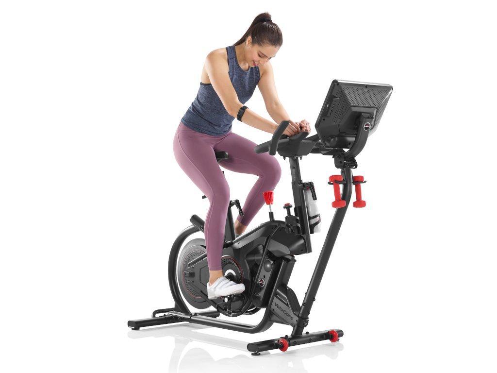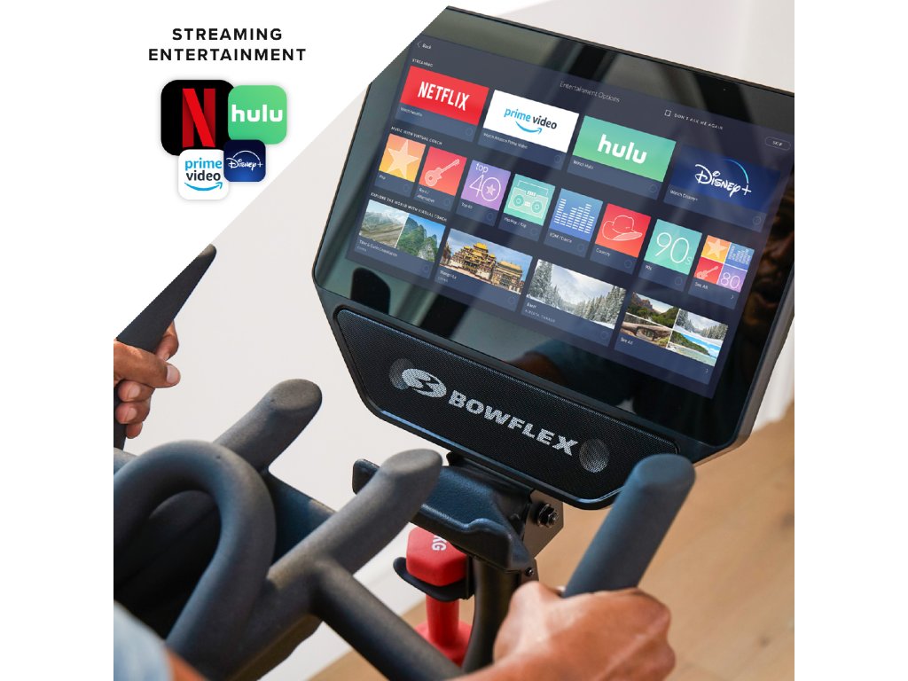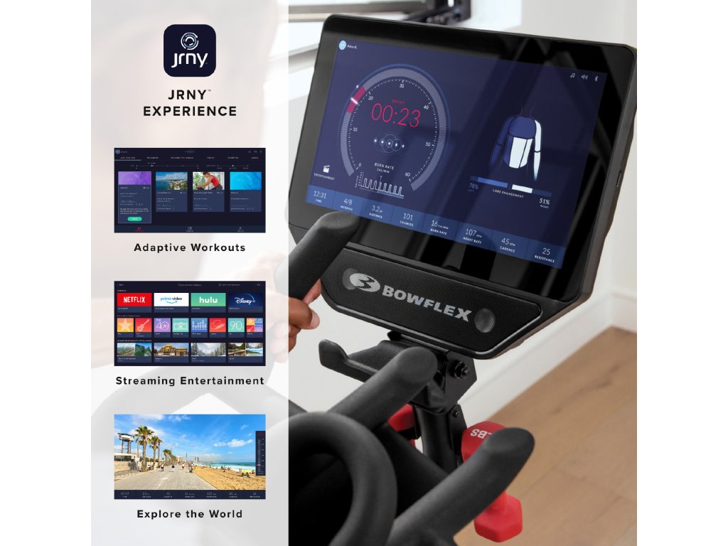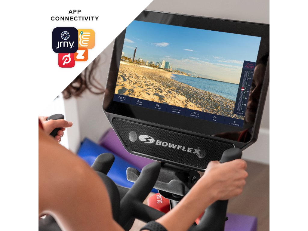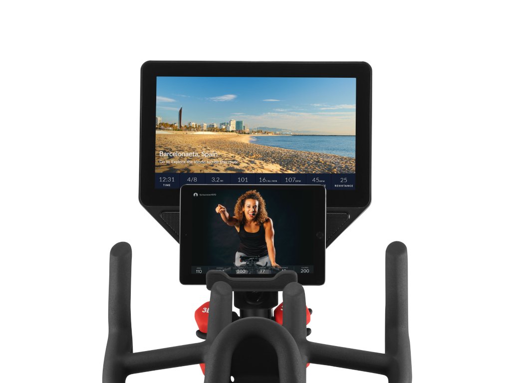16" HD dotykový displej integruje s aplikáciou JRNY pre štúdiové kurzy, scénické jazdy Explore the World a programy virtuálnych trénerov a navyše máte možnosť streamovať svoju obľúbenú zábavu. Môžete tiež používať aplikácie tretích strán, ako sú Peloton a Zwift, prostredníctvom vlastného zariadenia, vďaka čomu je všestrannejší ako iné modely. Tento bicykel nabitý funkciami je dodávaný so závažiami.
