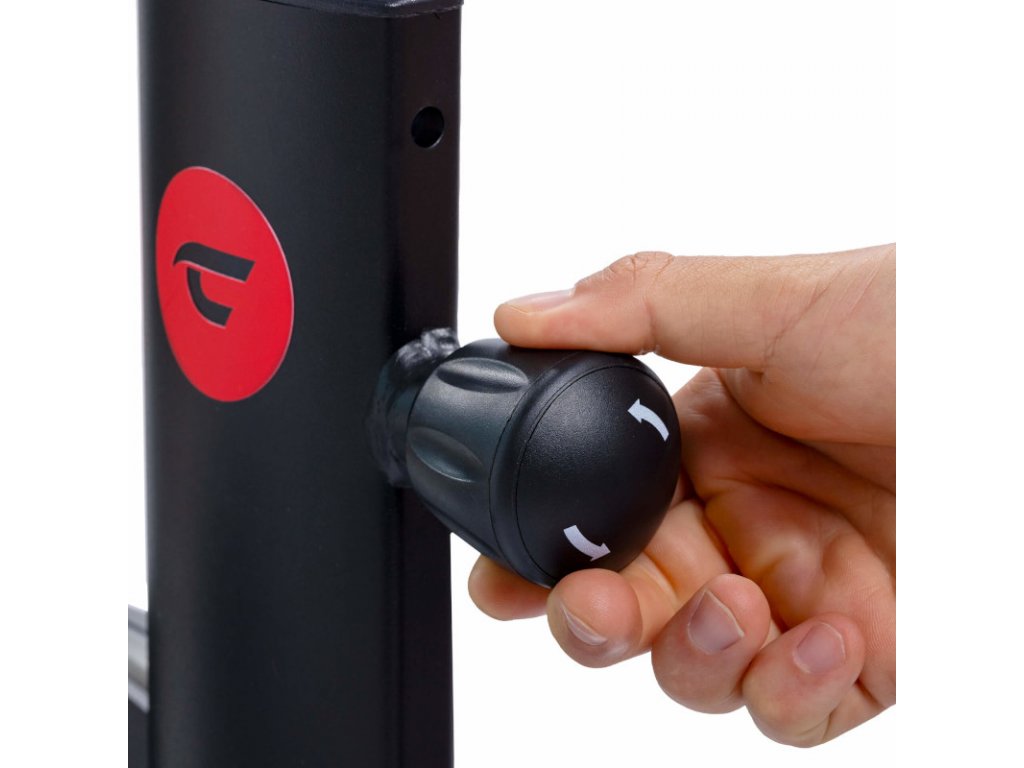 Race Bike 4.0 má plynule nastaviteľný odpor s funkciou núdzového brzdenia, ktorý sa dá regulovať a meniť klasickým spôsobom pomocou otočného ovládača.
