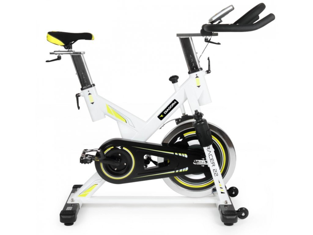Racer 22 je ten správny výber! Cyklotrenžér je nevšedný vďaka svojmu špecifickému dizajnu a záťažovým kolesom s hmotnosťou až 22 kg. Pozostáva z pevného oceľového rámu s maximálnou nosnosťou 120 kg. Vďaka nastaveniu horizontálneho a vertikálneho ergonomického sedadla sa prispôsobí všetkých užívateľom bez akýchkoľvek problémov. Taktiež máte možnosť si nastaviť riadidlá podľa Vaších predstáv. Cyklotrenažér je vybavený výkonným počítačom zobrazujúcim súčasne rýchlosť v km/h, čas celkového cvičenia, prejdenú vzdialenosť, spalené kalórie a pulz. Pomocou praktických transportných koliesok ľahko a pohodlne ho môžete premiestniť kdekoľvek budete potrebovať.