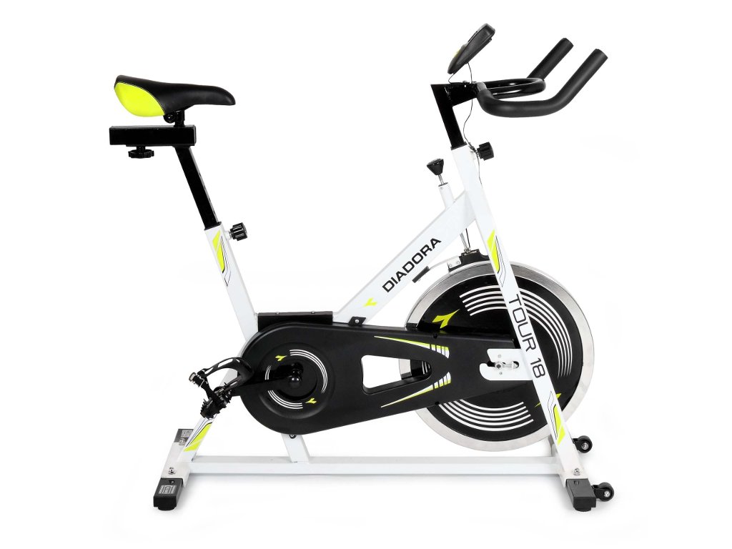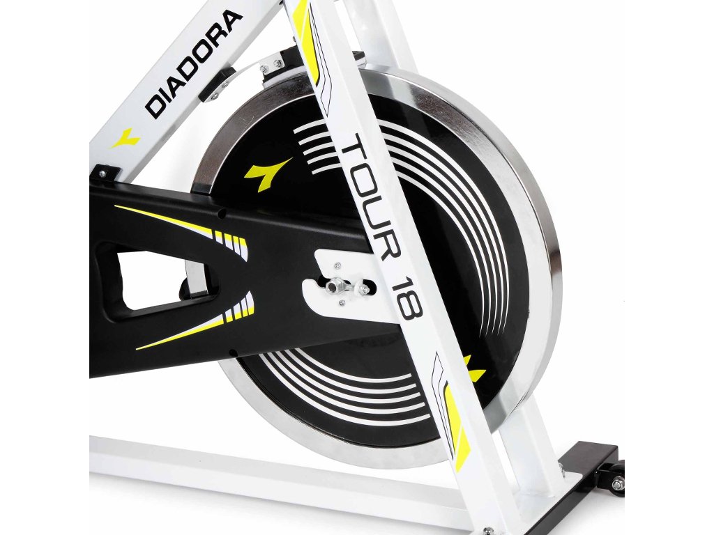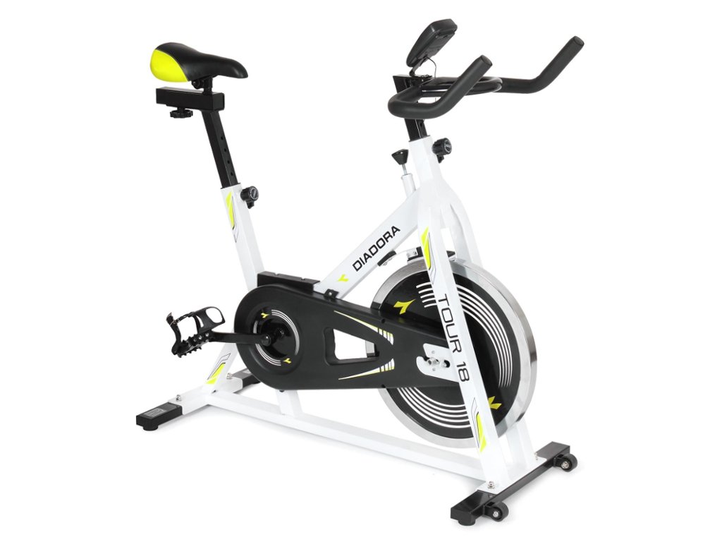 Tento cyklotrenažér Vám dopomôže k zlepšeniu Vašej fyzickej kondície, a to vďaka intenzívnemu tréningu s 18 kg zotrvačníkom s reťazovým prevodom. Nastavenie záťaže je kontinuálne, takže každý užívateľ má možnosť nastaviť si záťaž podľa vlastných schopností. Vďaka transportným kolieskam môžete bez obáv presúvať cyklotrenažér Diadora Tour 18 z jedného miesta na druhé. Vyznačuje sa pohodlným tvarovaným sedadlom, ktoré umožňuje horizontálne a vertikálne nastavenie. V prípade potreby okamžitého zastavenia môžete použiť bezpečnostnú brzdu. Samozrejmosťou je aj prehľadný displej, na ktorom môžete sledovať všetky potrebné informácie o Vašom tréningu, ako je napríklad čas, vzdialenosť, rýchlosť a podobne. Tento model je veľmi robustný, stabilný a je určený pre užívateľov až do 110 kg.