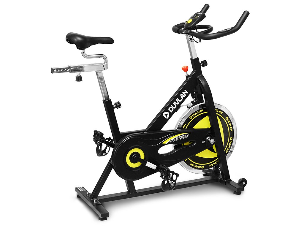 Pohodlie pri cvičení vám zabezpečí nastaviteľné sedadlo, ktoré je možné nastaviť do vertikálnej ako aj horizontálnej polohy. Cyklotrenažér DUVLAN Huron je vďaka svojej cene a kvalite jedným z najobľúbenejších cyklotrenažérov. V pevnej oceľovej konštrukcii je osadené záťažové koleso s hmotnosťou 13 kg, ktoré brzdíte pomocou trecej brzdy. Na riadidlách je umiestnený počítač na ktorom sa dozviete všetky dôležité údaje o priebehu cvičenia. Riadidlá sú výškovo nastaviteľné, sedadlo je nastaviteľné horizontálne aj vertikálne takže si oveľa lepšie nastavíte správnu polohu pre pohodlné bicyklovanie. Systém vyrovnávania nerovností podlahy sú umiestnené na oboch stabilizátoroch a pre jednoduchý presun cyklotrenažéra slúžia transportné kolieska.