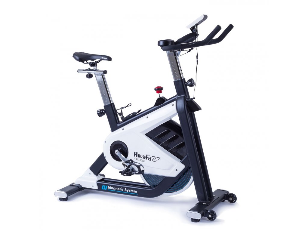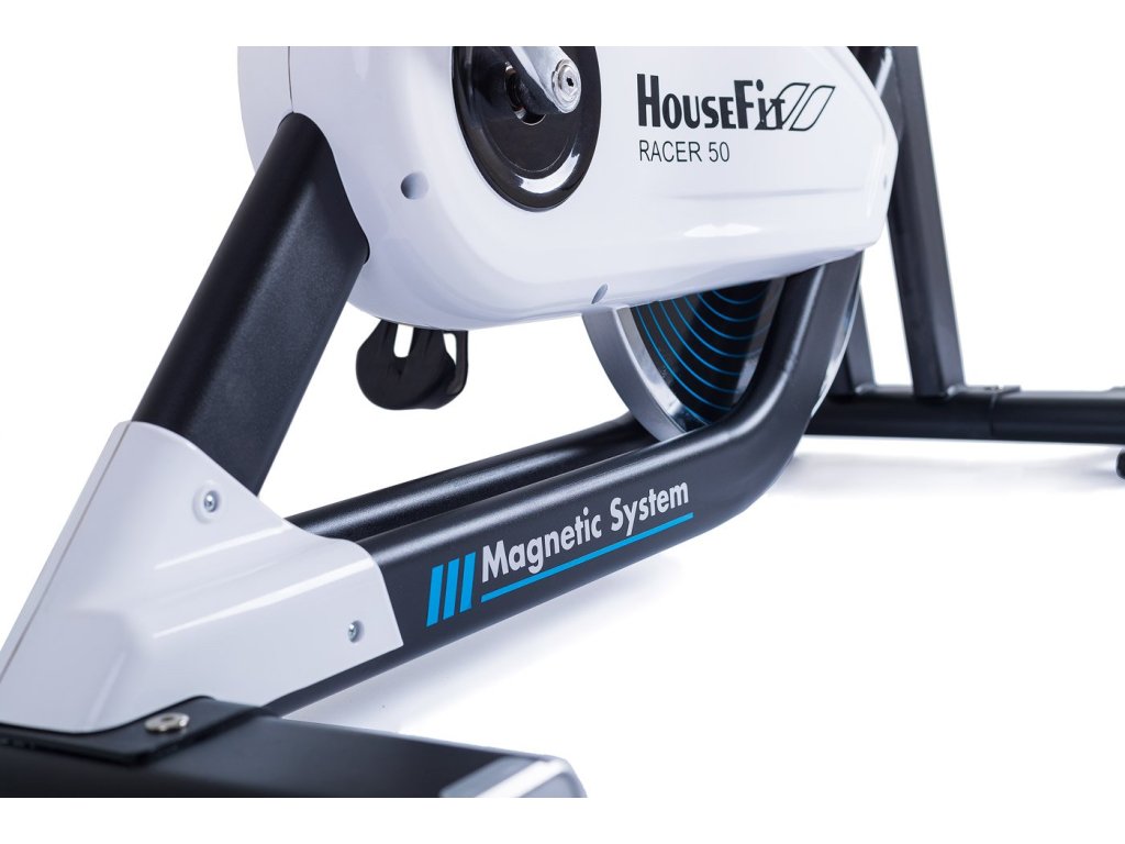 HOUSEFIT RACER 50 má magnetický brzdný systém, ktorý je ovládaný manuálnym otočným regulátorom s dostatočnou variabilitou odporu. Vďaka zotrvačníku s hmotnosťou 14 kg a modernej magnetickej brzde má HOUSEFIT RACER 50 komfortný, plynulý a úplne tichý chod aj pri náročnom tréningu.