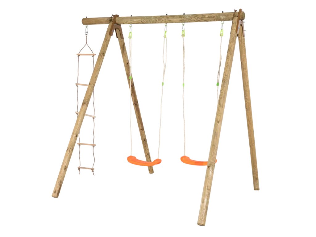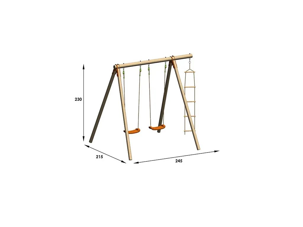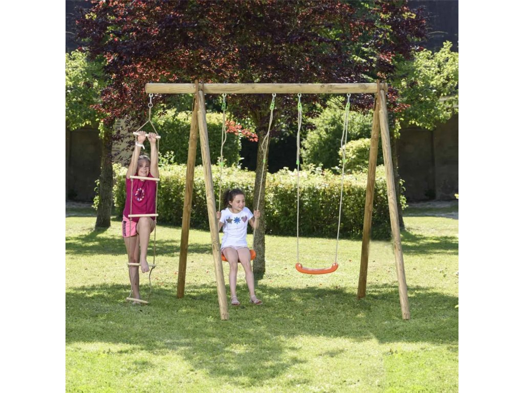 Táto hodačka je vhodná do všetkých záhrad, aj do tých najmenších. Je vybavená zariadením, ktoré vám umožní rôzne zábavy a hry, ale aj učenie. Obsahuje 1 lanový rebrík a 2 hojdačky.