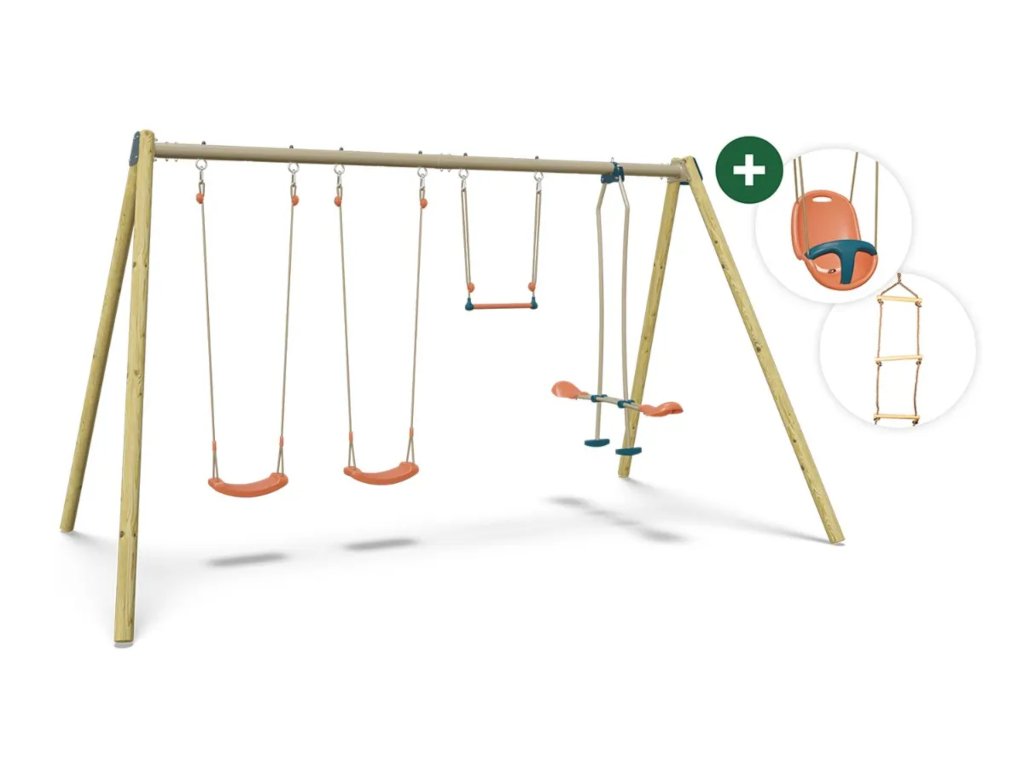 - dvojtá hojdačka s koralovými sedačkami, bezpečnostný dizajn proti zasekávaniu
