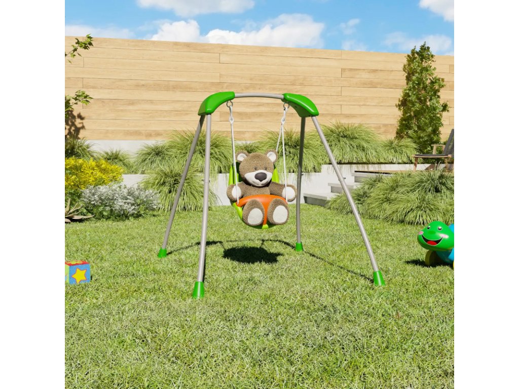 - vrchná tyč a nohy hojdačky sú spojené pomocou zelených kovových dielov