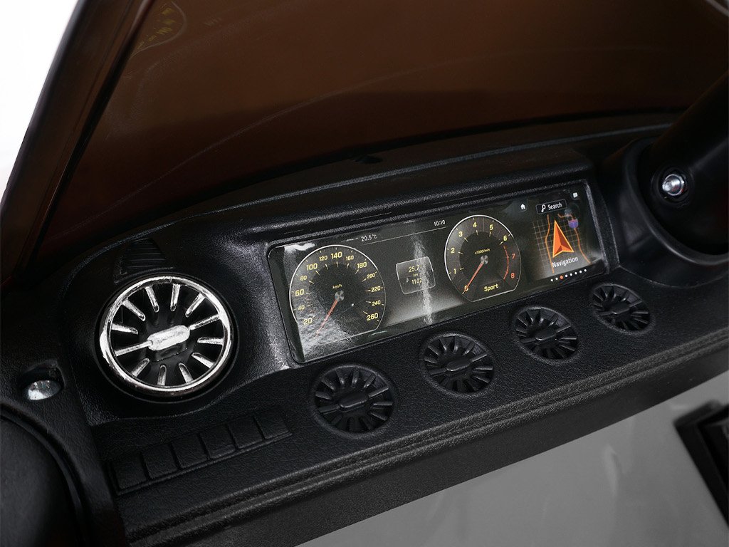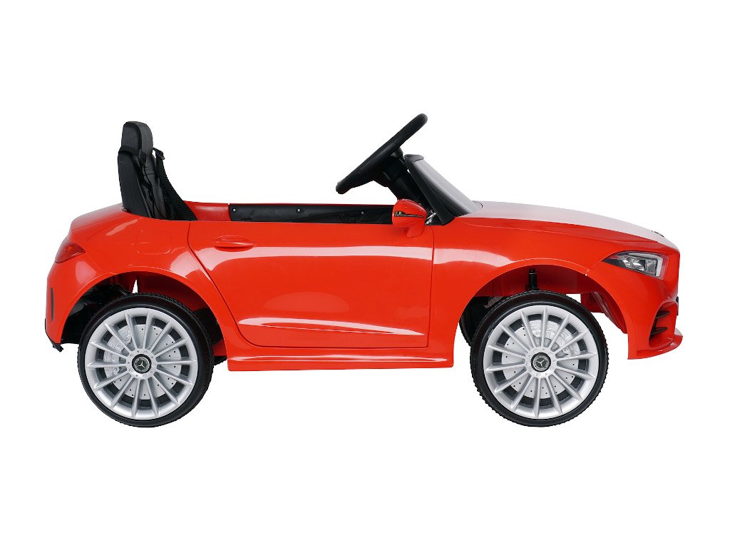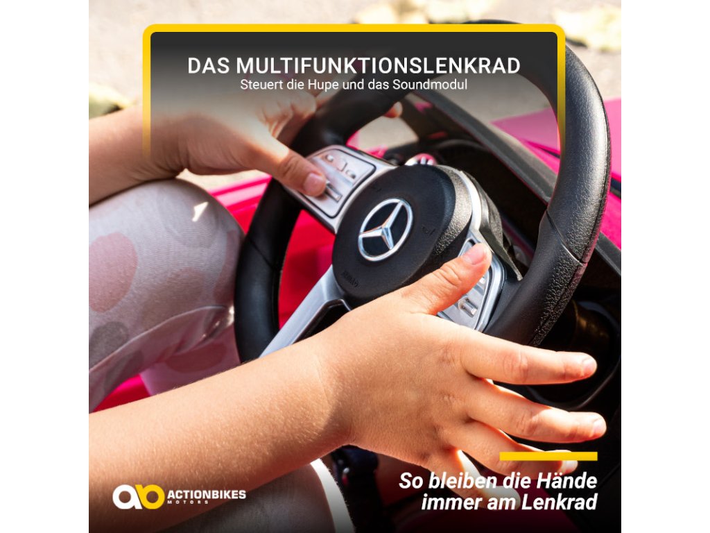 Pohodlné kožené sedadlo s 3-bodovým bezpečnostným pásom, jasnými LED svetlometmi , multifunkčným volantom a odolnými pneumatikami z mäkkej gumy spojí potešenie so spoľahlivým zabezpečením. Autentický vzhľad dopĺňa hviezda Mercedes a poznávacia značka. S rozmermi 103,5 x 60 x 50 cm a maximálnym zaťažením do 25 kg je auto vhodné pre deti od troch do piatich rokov.