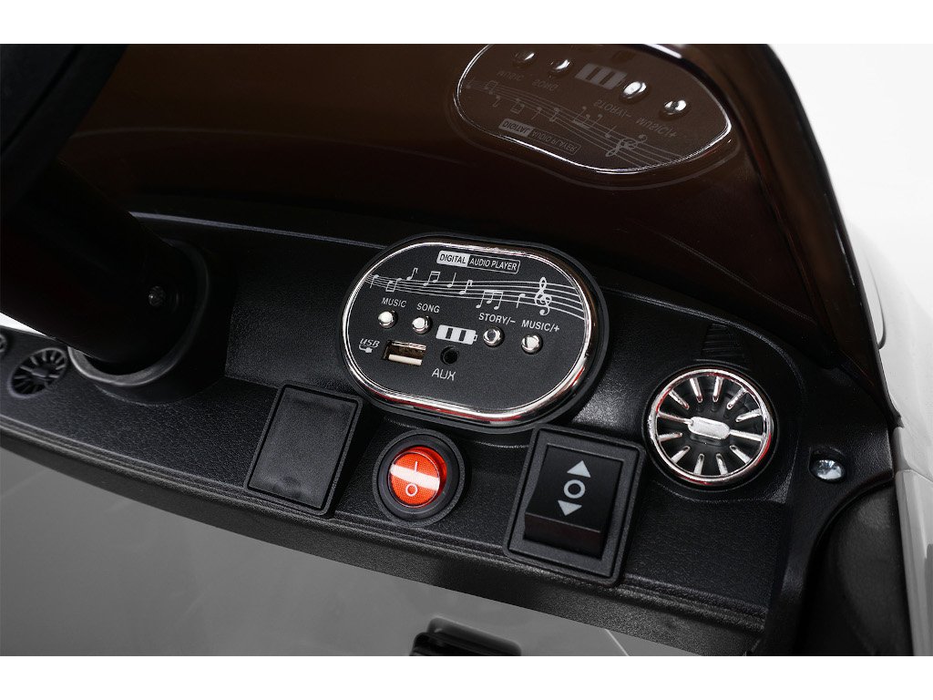 Čo by pri jazde v kabriolete nemalo chýbať? Vaša obľúbená hudba tam samozrejme nesmie chýbať. Naše detské elektrické autíčko Mercedes-Benz CLS 350 Coupé ponúka niekoľko možností pripojenia: V kokpite je hudobný prehrávač s USB a AUX pripojením . Bez problémov je možné prehrávať aj hudobné súbory MP3.