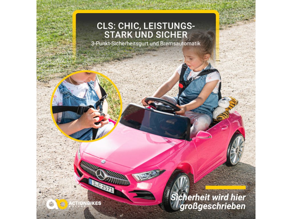 Detské elektrické autíčko Mercedes Benz nie je len elegantné na pohľad a je mimoriadne výkonné, najvyššou prioritou je aj bezpečnosť. 3 -bodový bezpečnostný pás zaisťuje, že mladí vodiči pri rýchlych jazdných manévroch nevykĺznu zo sedadiel. Pre bezpečný pôžitok z jazdy je kupé vybavené aj automatickým brzdením : akonáhle zložíte nohu z plynu, auto sa zastaví.