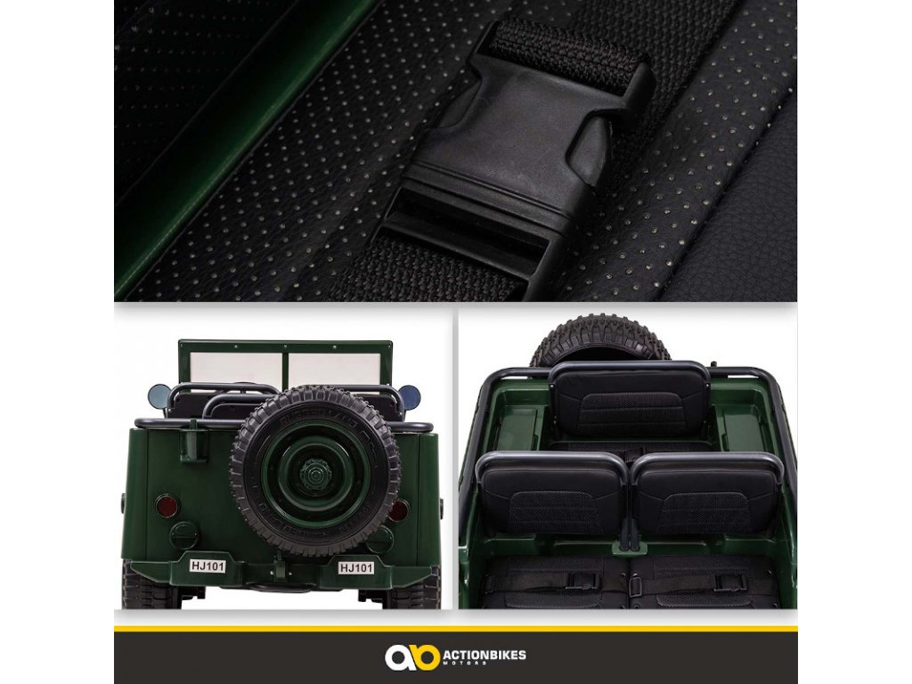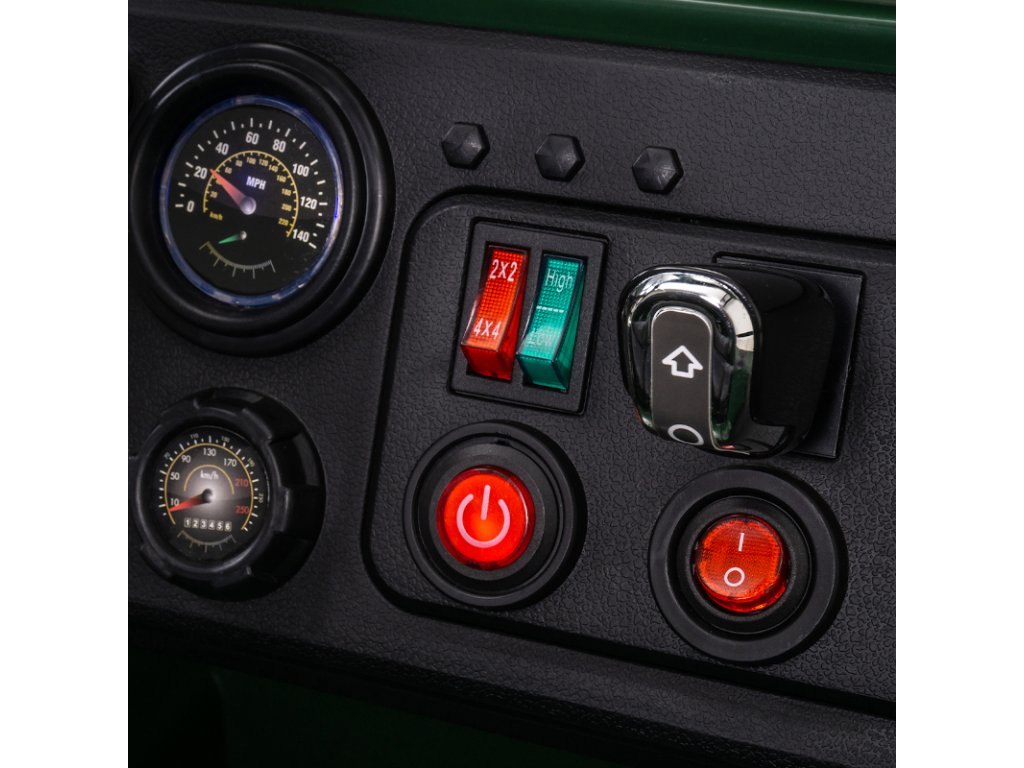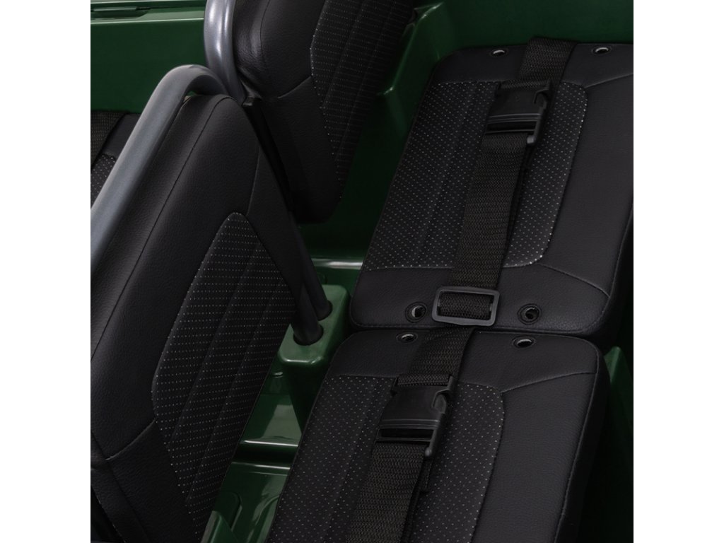Robustný dizajn, tmavozelený lak a štýlové nálepky na detskom džípe podporujú plnohodnotný dojem skutočného off-roadu.