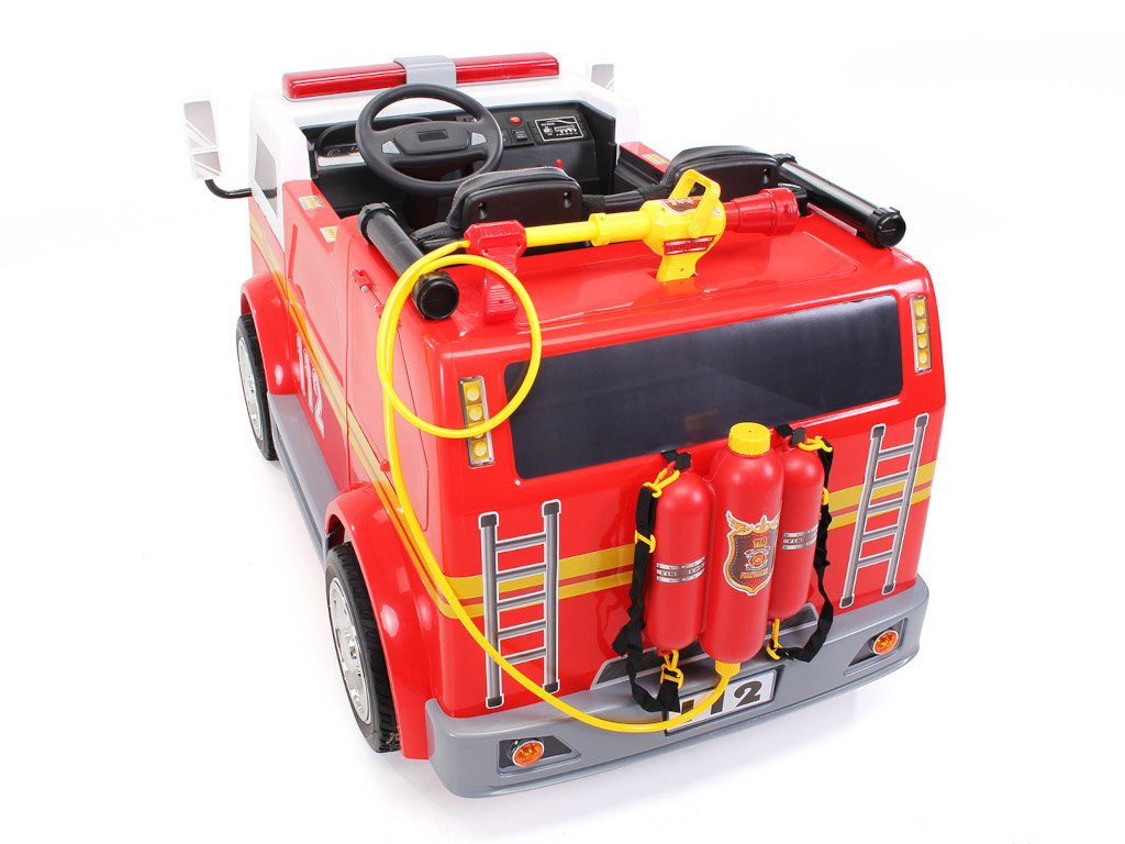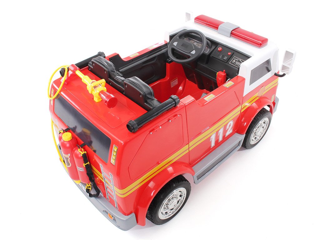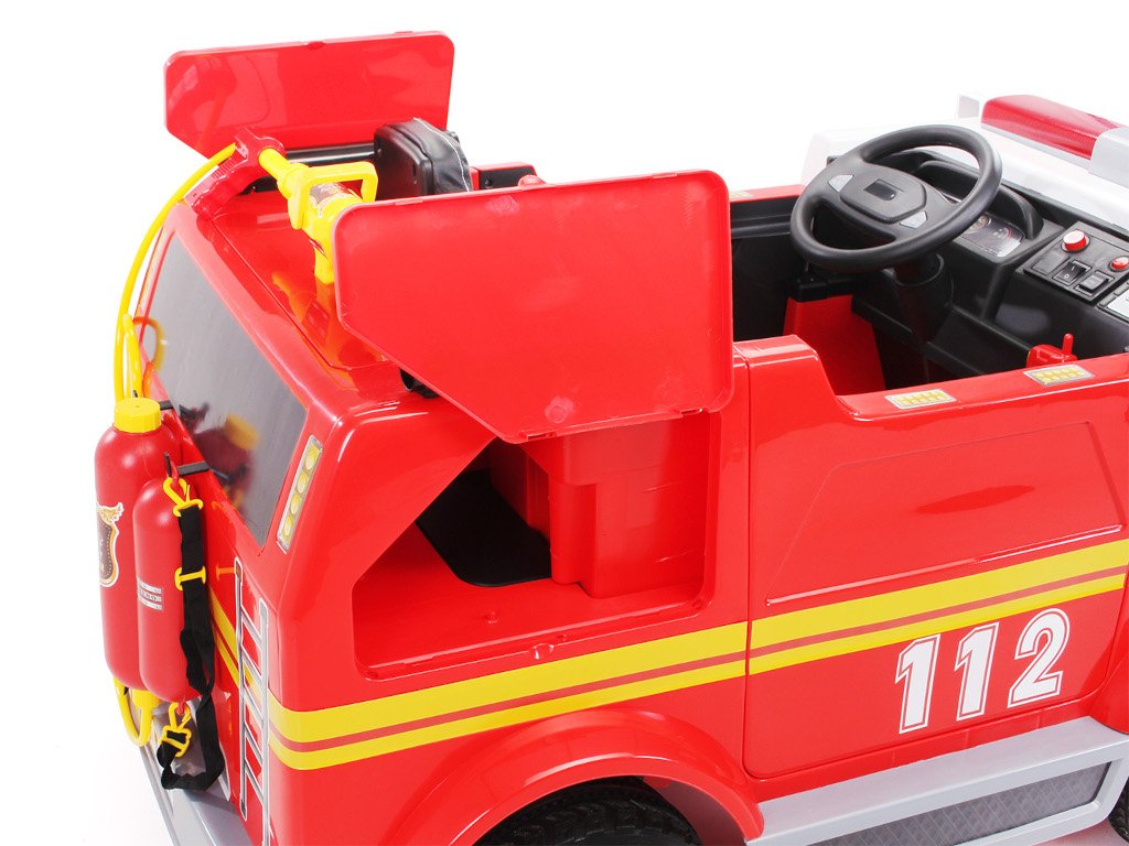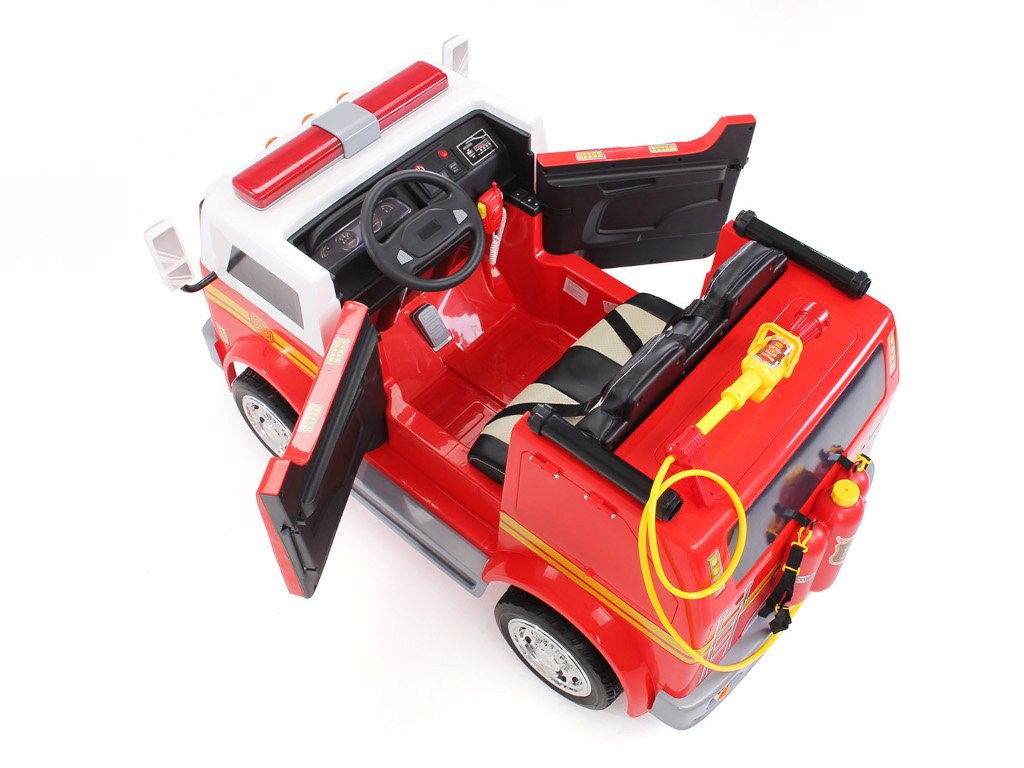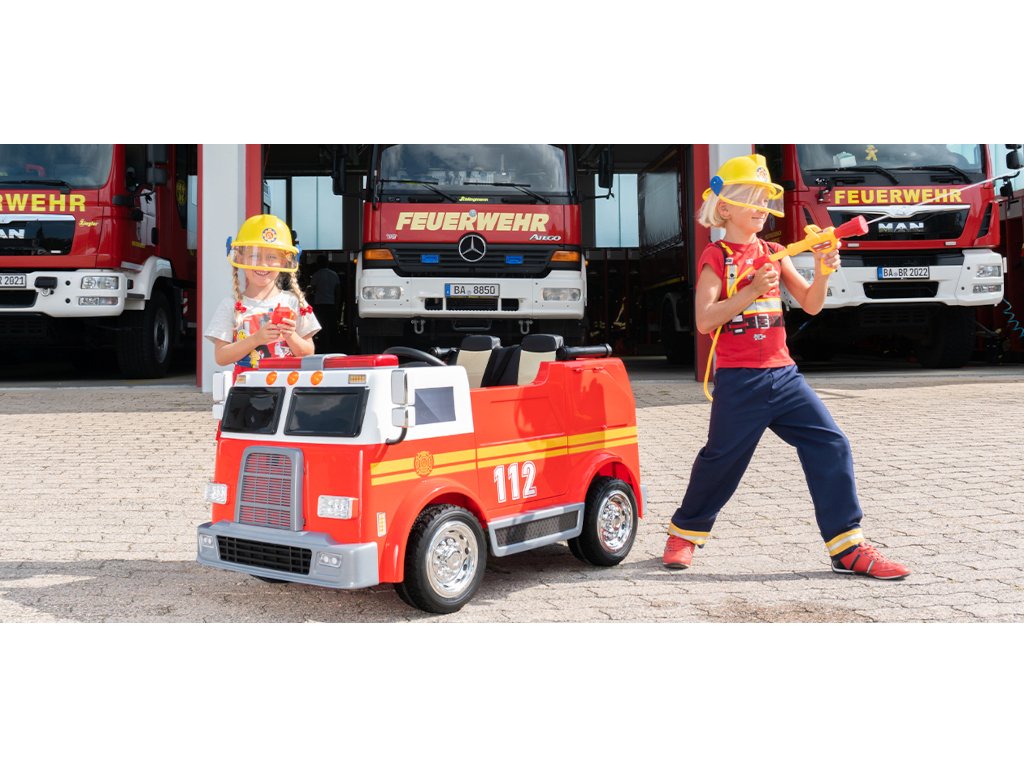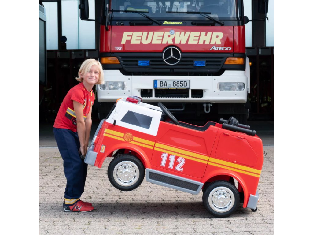 Hasičské auto presvedčí tromi prevodmi vpred a jednou spiatočkou. Potom už len stačí: zaradiť rýchlosť, zošliapnuť plynový pedál a vyraziť. Dva motory s celkovým výkonom 90 wattov a pohon 2 kolies zabezpečujú rýchlosť až 6 km/h. Vďaka výkonnej 5 Ah batérii s 24V trvá jazda v hasičskom aute až 1,5 hodiny. Nabitý cez noc, zábava z jazdy pokračuje aj na druhý deň.