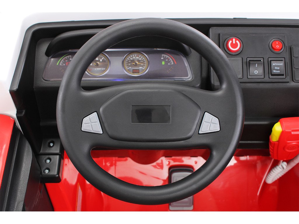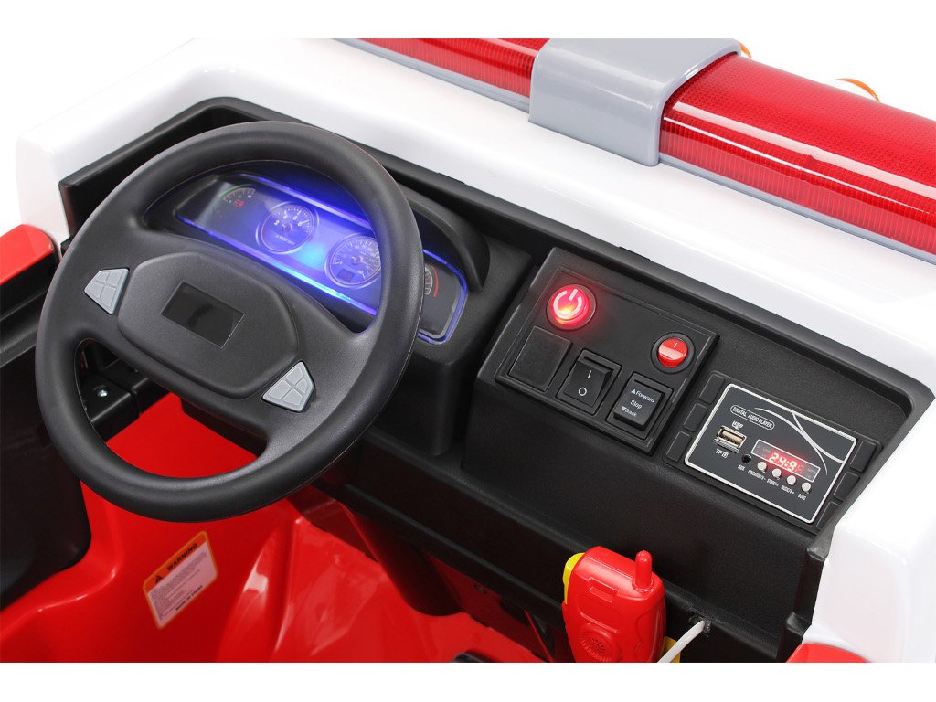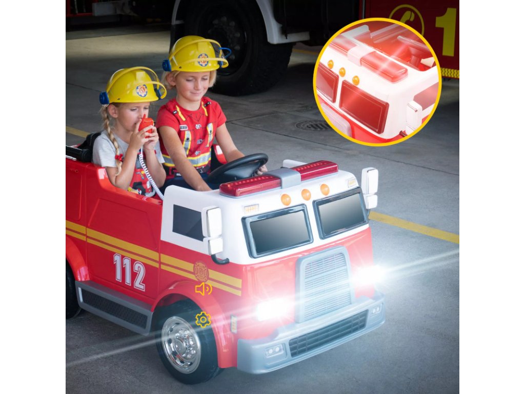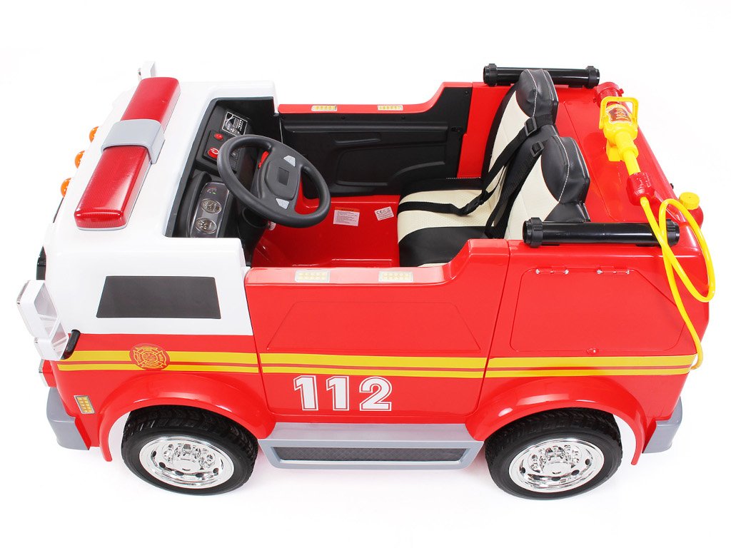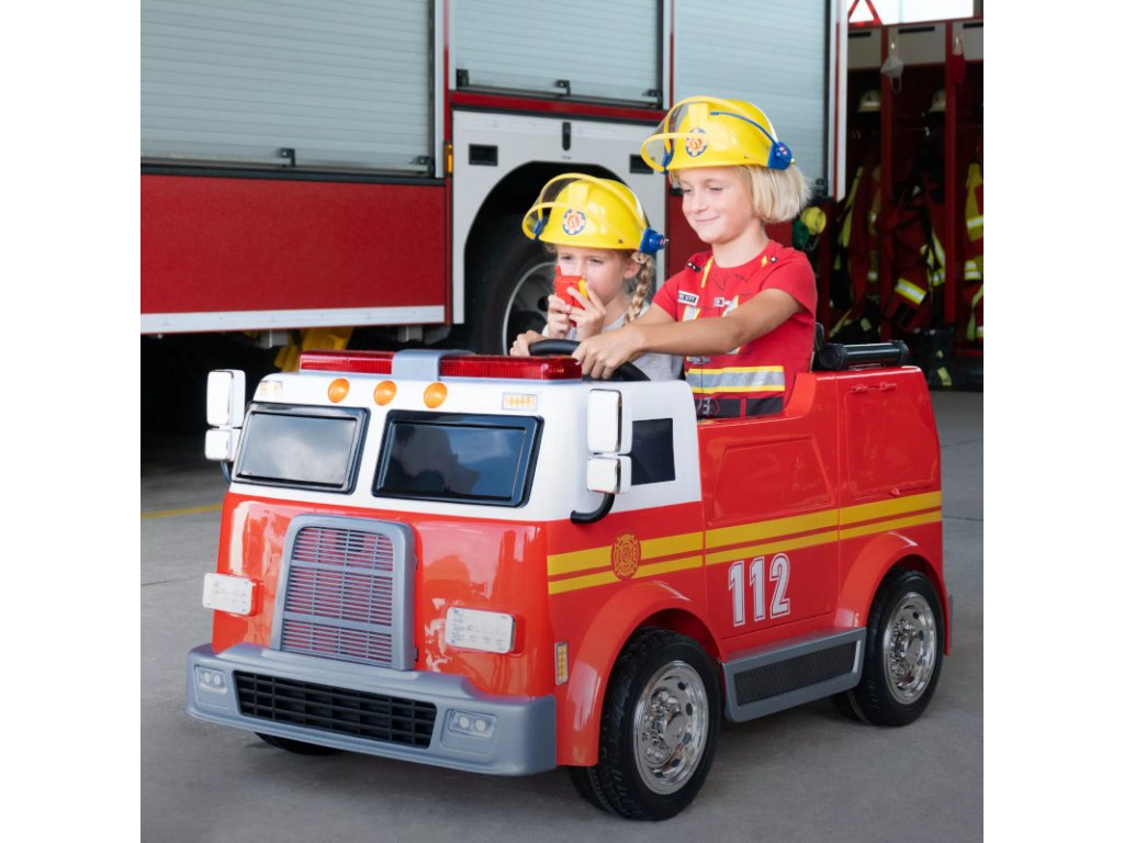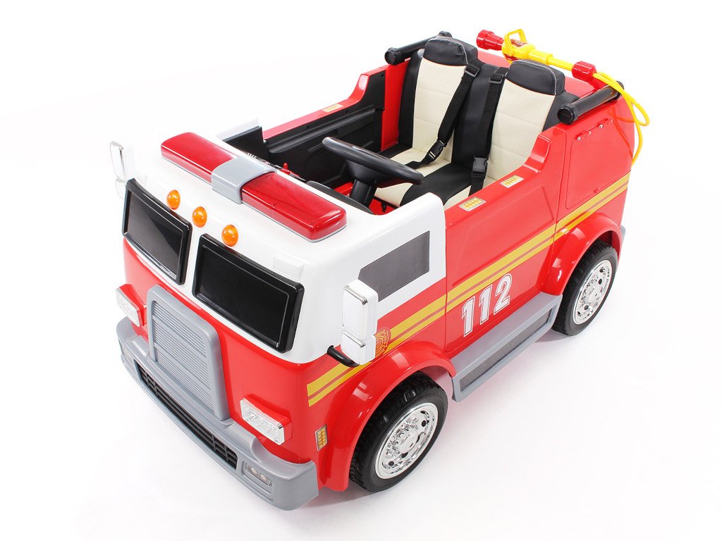 Hasičské auto presvedčí tromi prevodmi vpred a jednou spiatočkou. Potom už len stačí: zaradiť rýchlosť, zošliapnuť plynový pedál a vyraziť. Dva motory s celkovým výkonom 90 wattov a pohon 2 kolies zabezpečujú rýchlosť až 6 km/h. Vďaka výkonnej 5 Ah batérii s 24V trvá jazda v hasičskom aute až 1,5 hodiny. Nabitý cez noc, zábava z jazdy pokračuje aj na druhý deň.