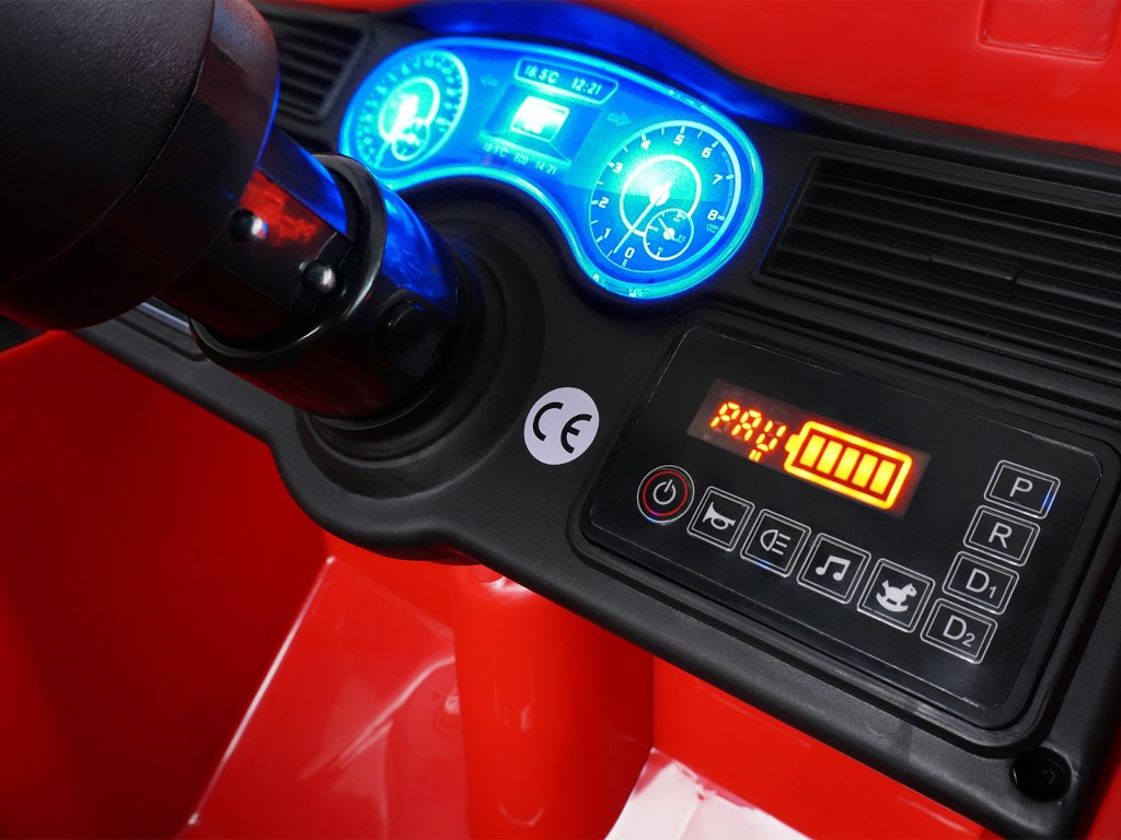 Mohutným dojmom pôsobia aj LED svetlá v ráfikoch . A vďaka LED svetlometom je trasa vždy dobre osvetlená. Každý už z diaľky vidí, že sa blíži ohnivočervené detské auto!