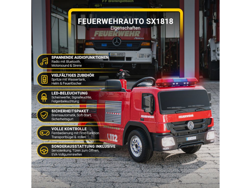 V skutočnej hasičskej prevádzke by siréna samozrejme nemala chýbať . Takže samozrejme je súčasťou detského elektrického hasičského auta SX1818.